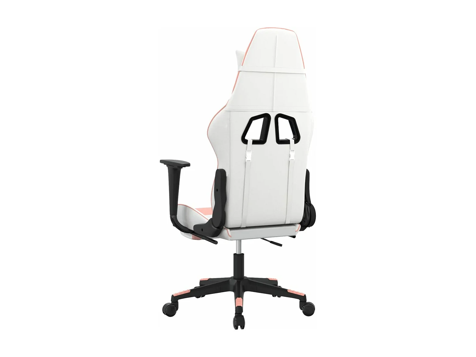 Cadeira de massagem para jogos em pele sintética branca e rosa