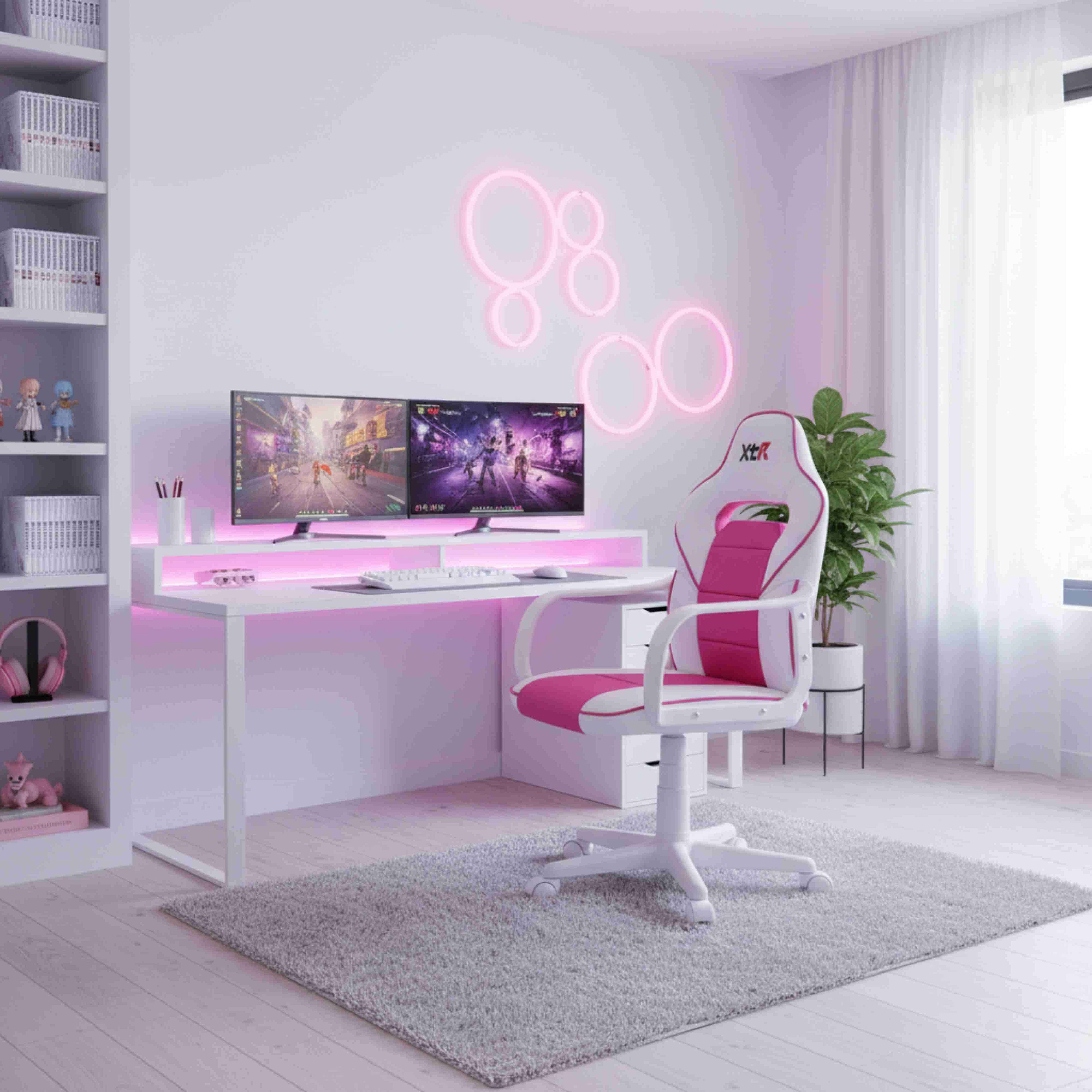 Cadeira Gamer Vanellope Branca/Rosa Estilo Gamer