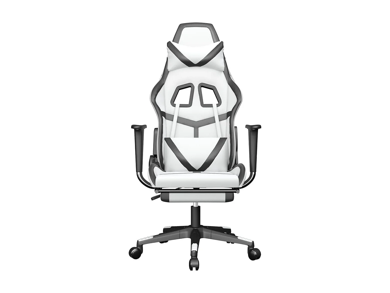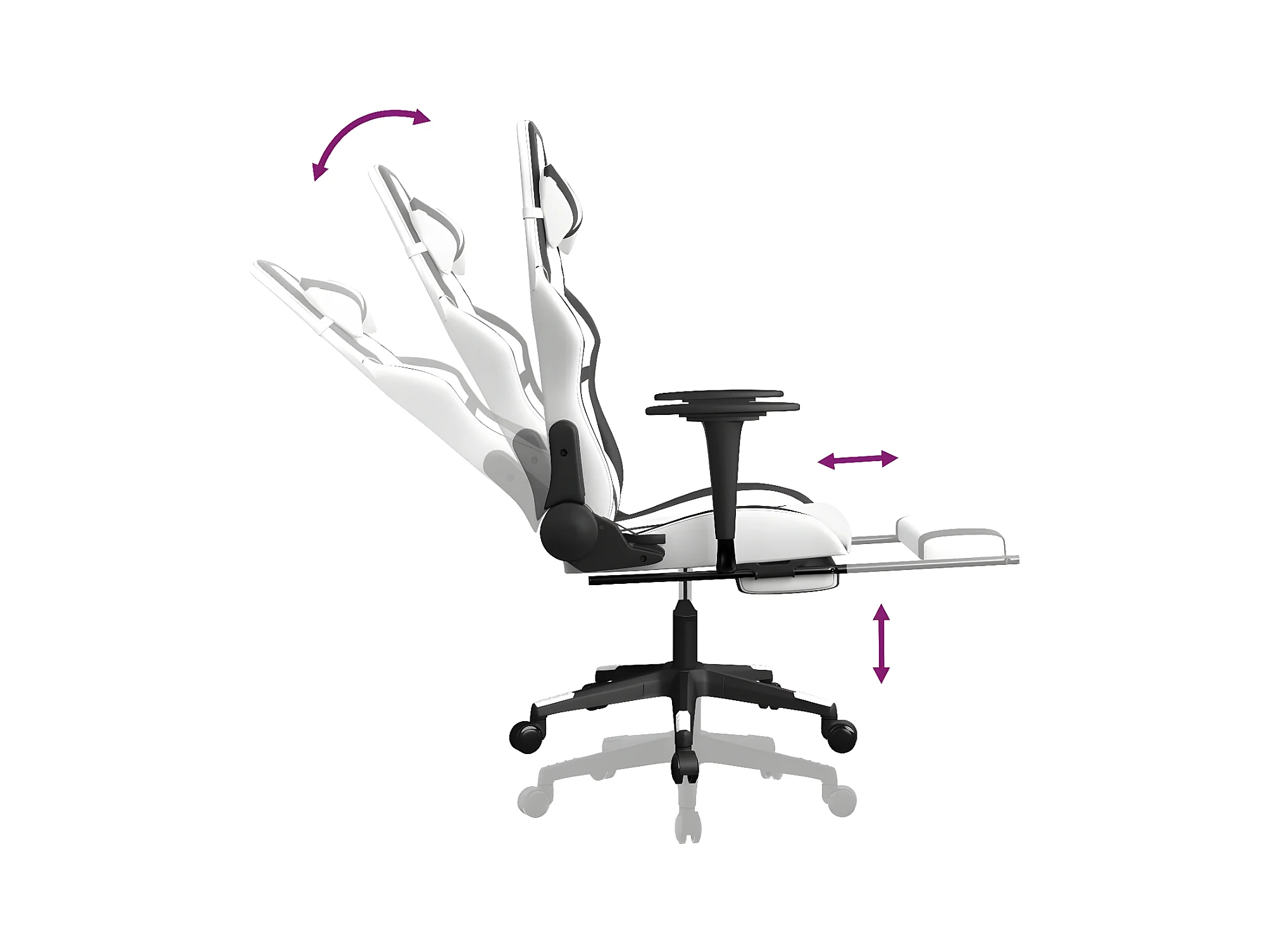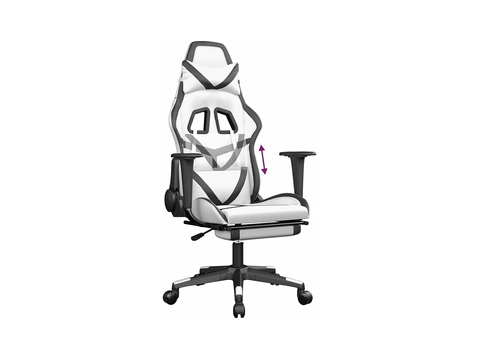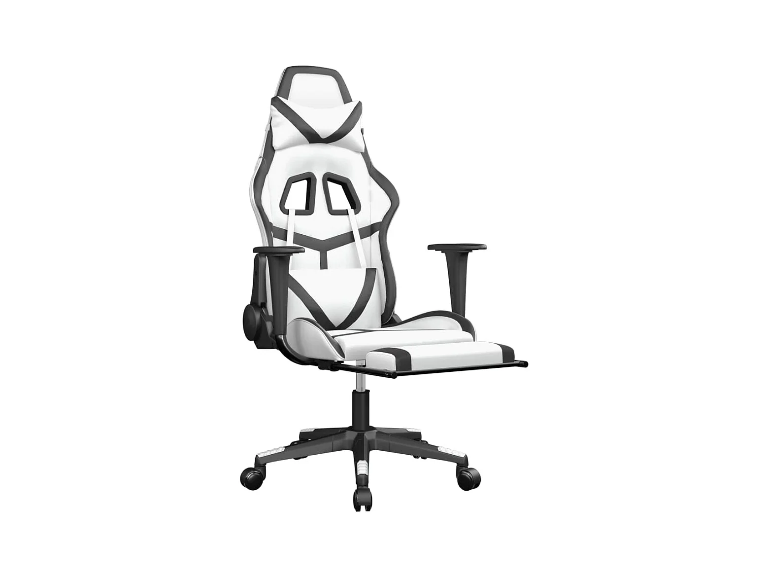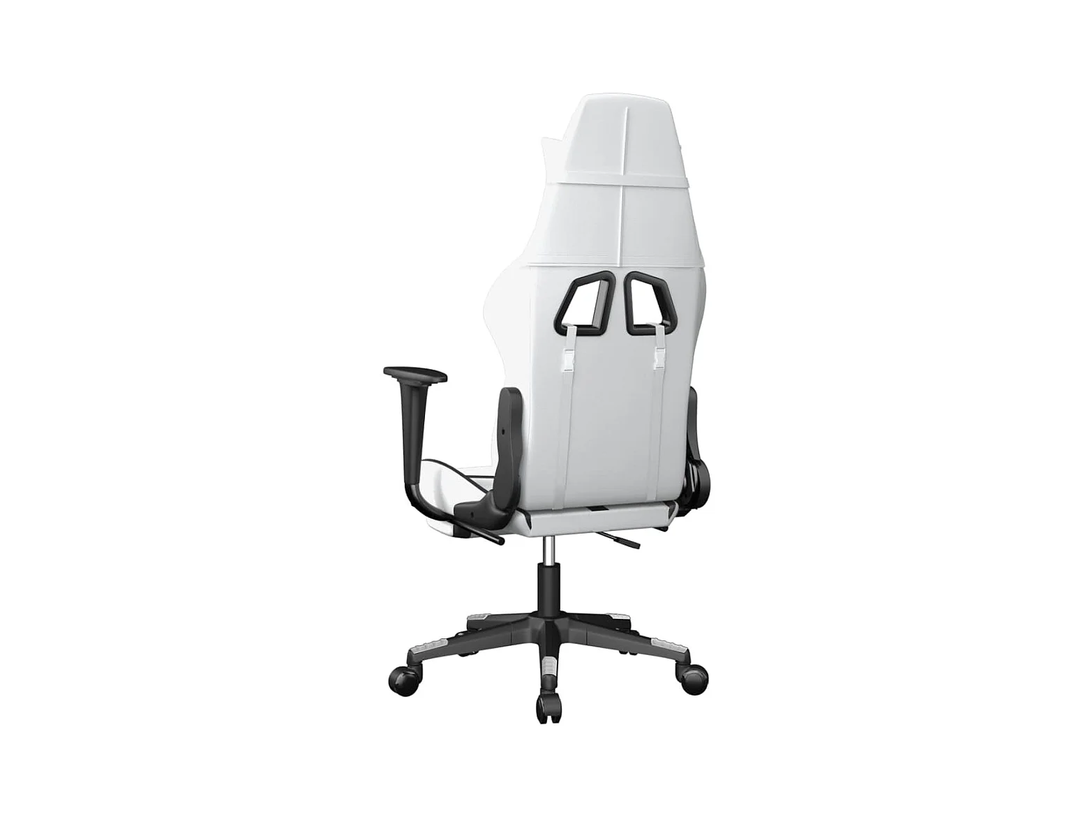 Cadeira gaming c/ apoio p/ pés couro artificial preto e branco