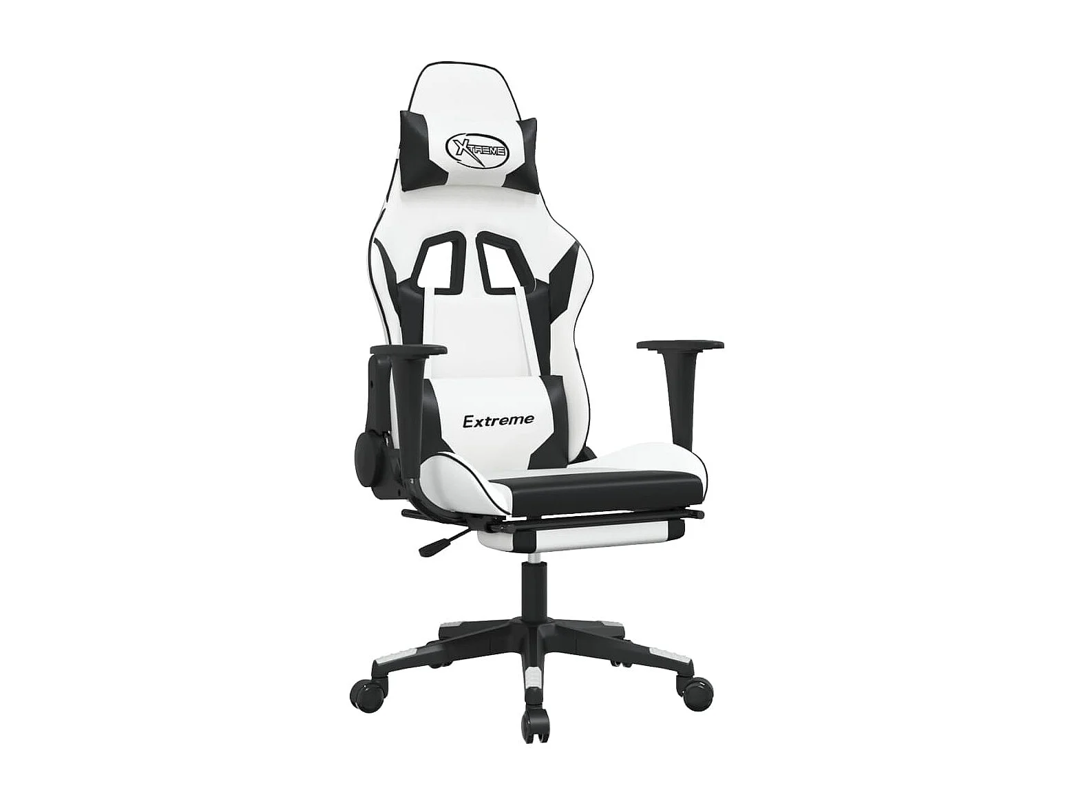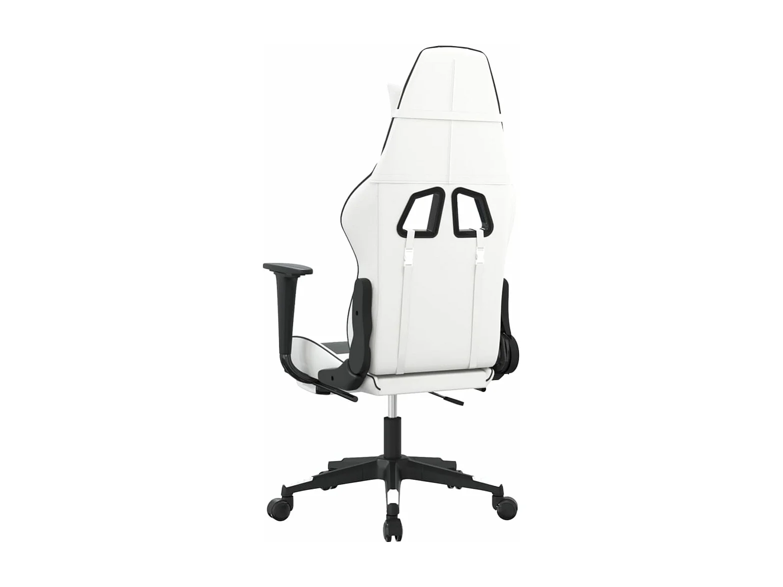 Cadeira gaming massagens c/ apoio pés couro artif. preto/branco