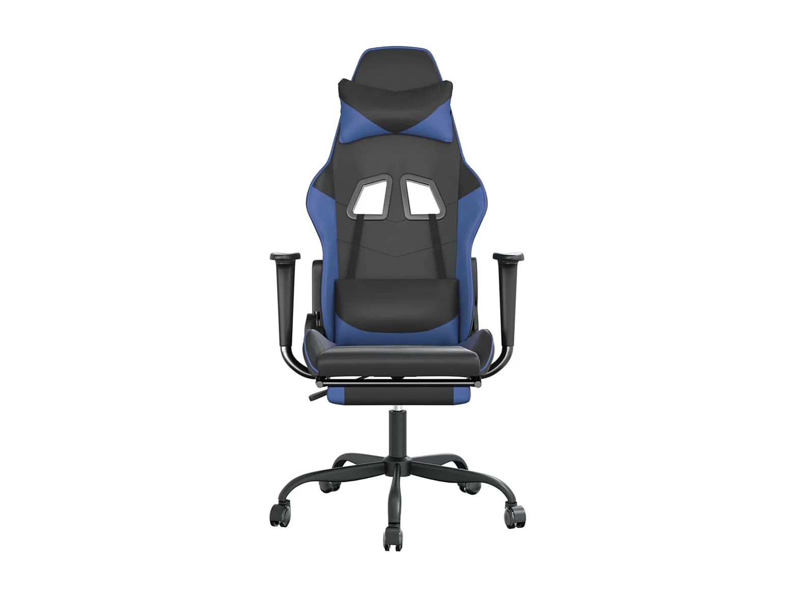 Cadeira gaming c/ apoio para pés couro artificial preto e azul
