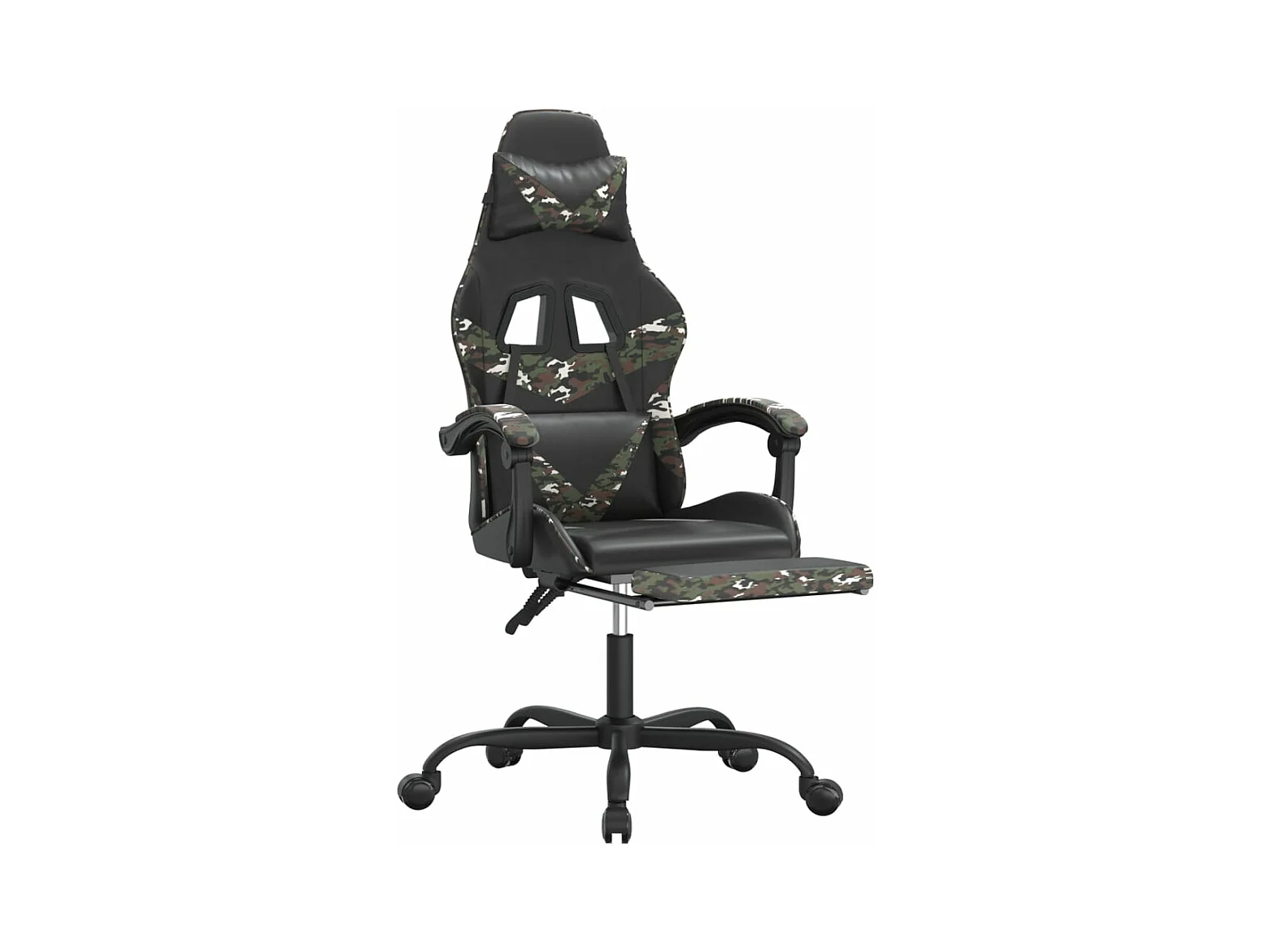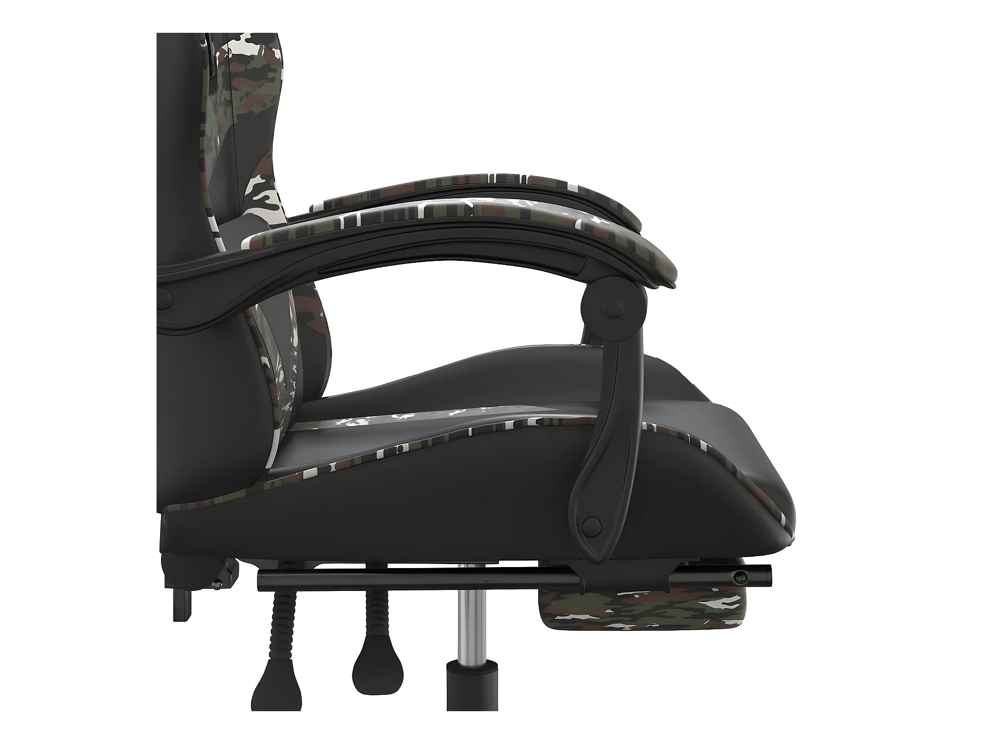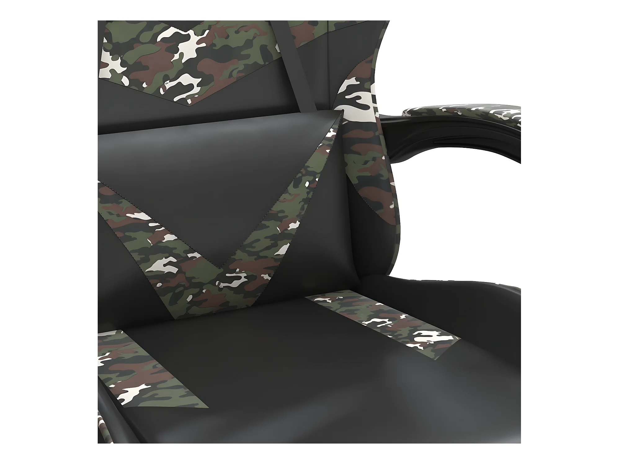 Cadeira gaming c/ apoio pés couro artificial preto e camuflado