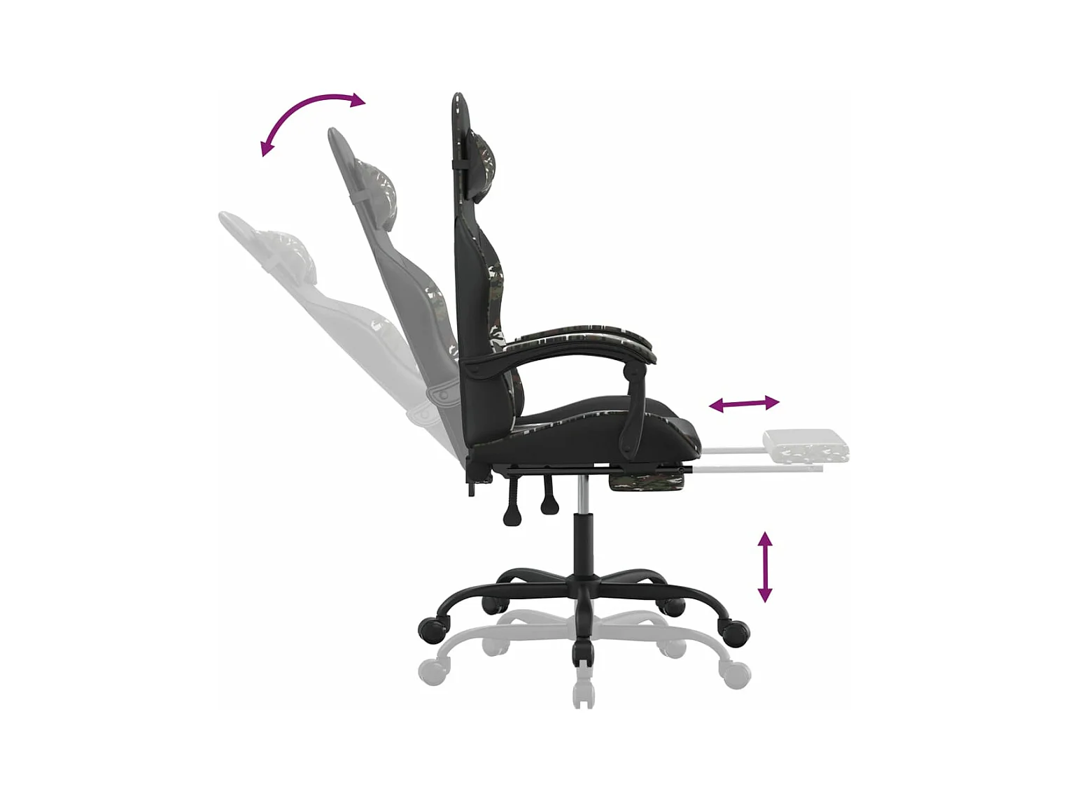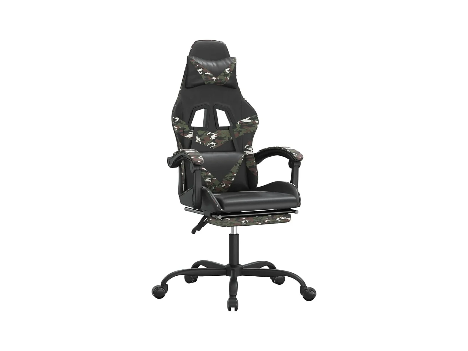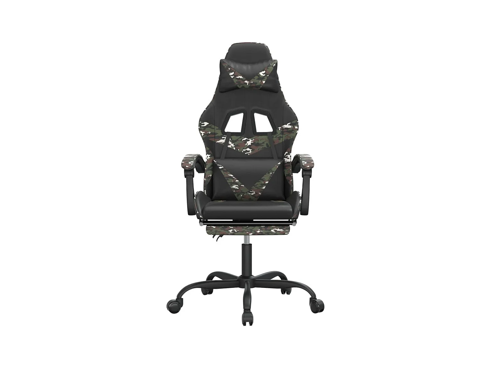 Cadeira gaming c/ apoio pés couro artificial preto e camuflado