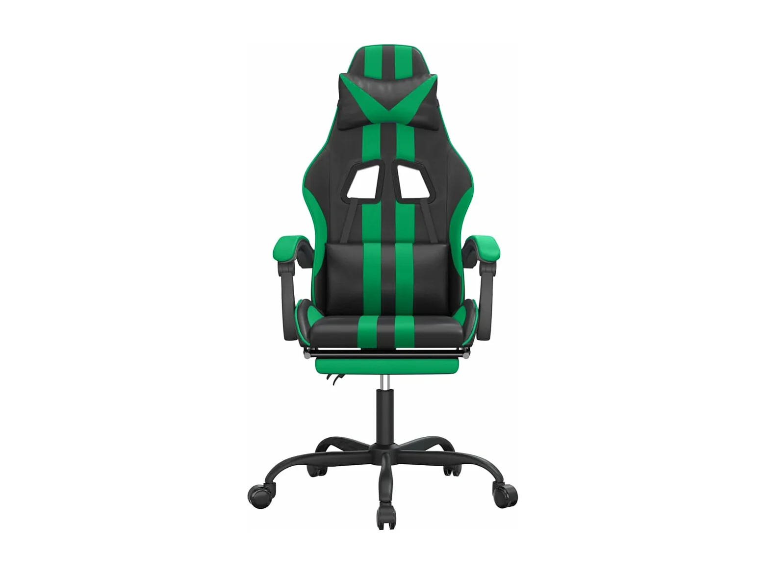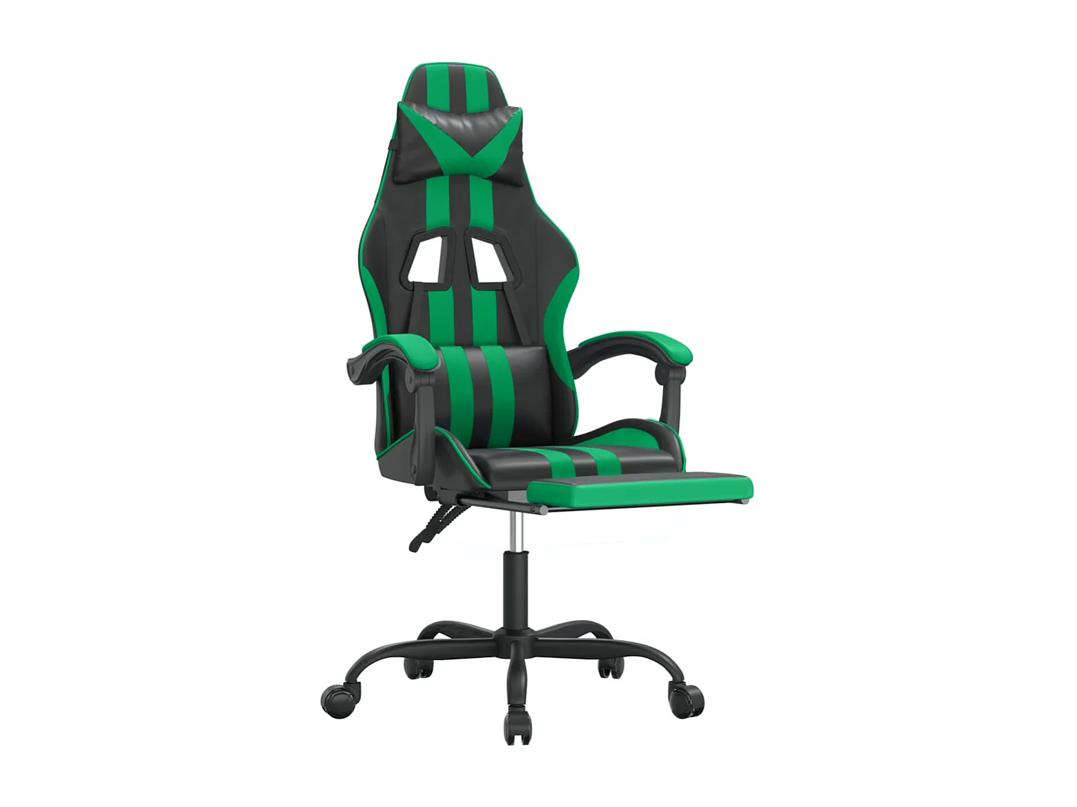 Cadeira gaming c/ apoio pés couro artificial preto e verde
