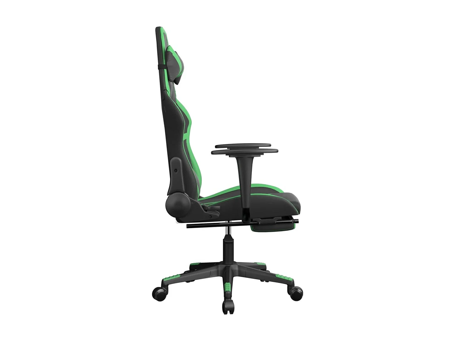 Cadeira gaming c/ apoio pés couro artificial preto e verde
