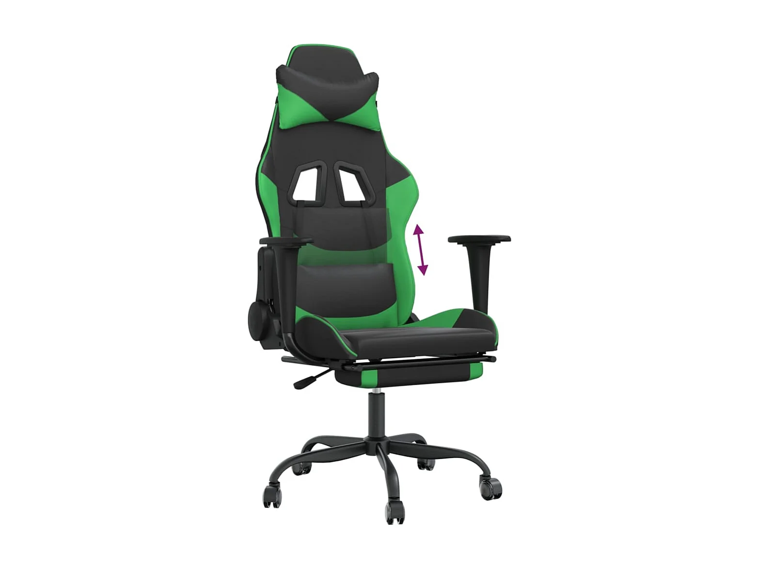 Cadeira gaming massagens couro artificial preto e verde PT394072