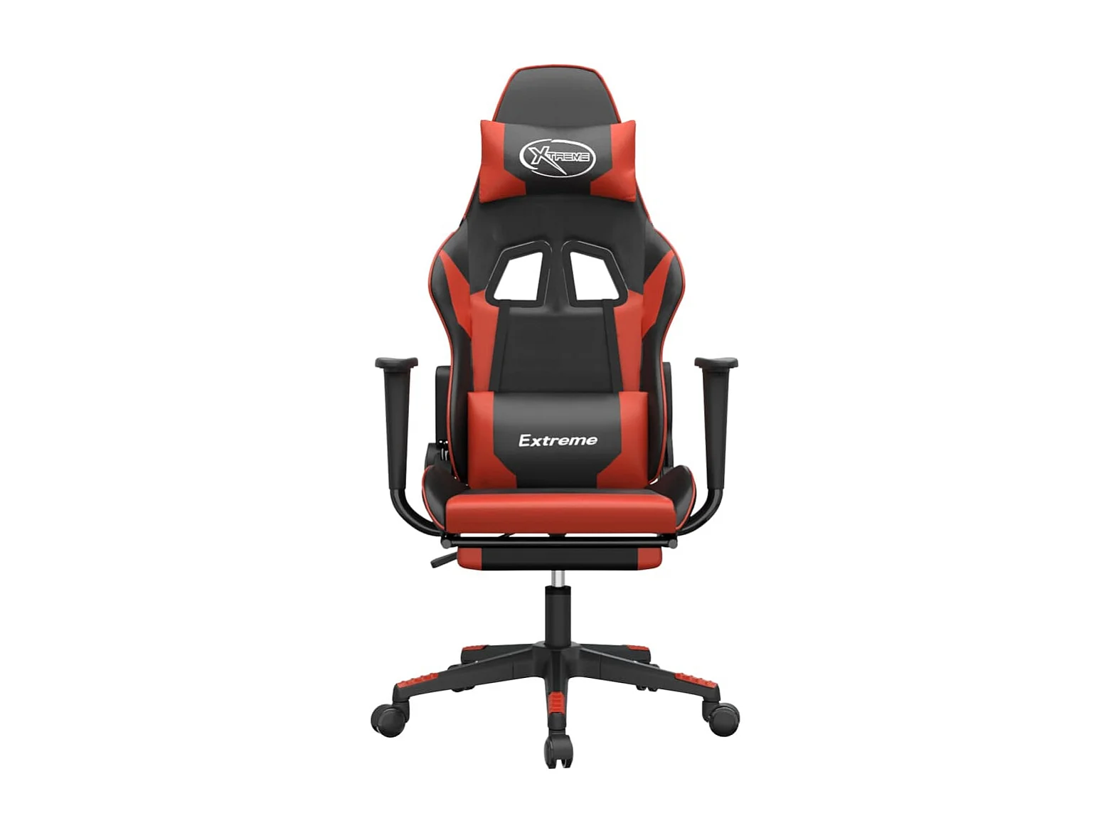 Cadeira gaming c/ apoio pés couro artificial preto e vermelho