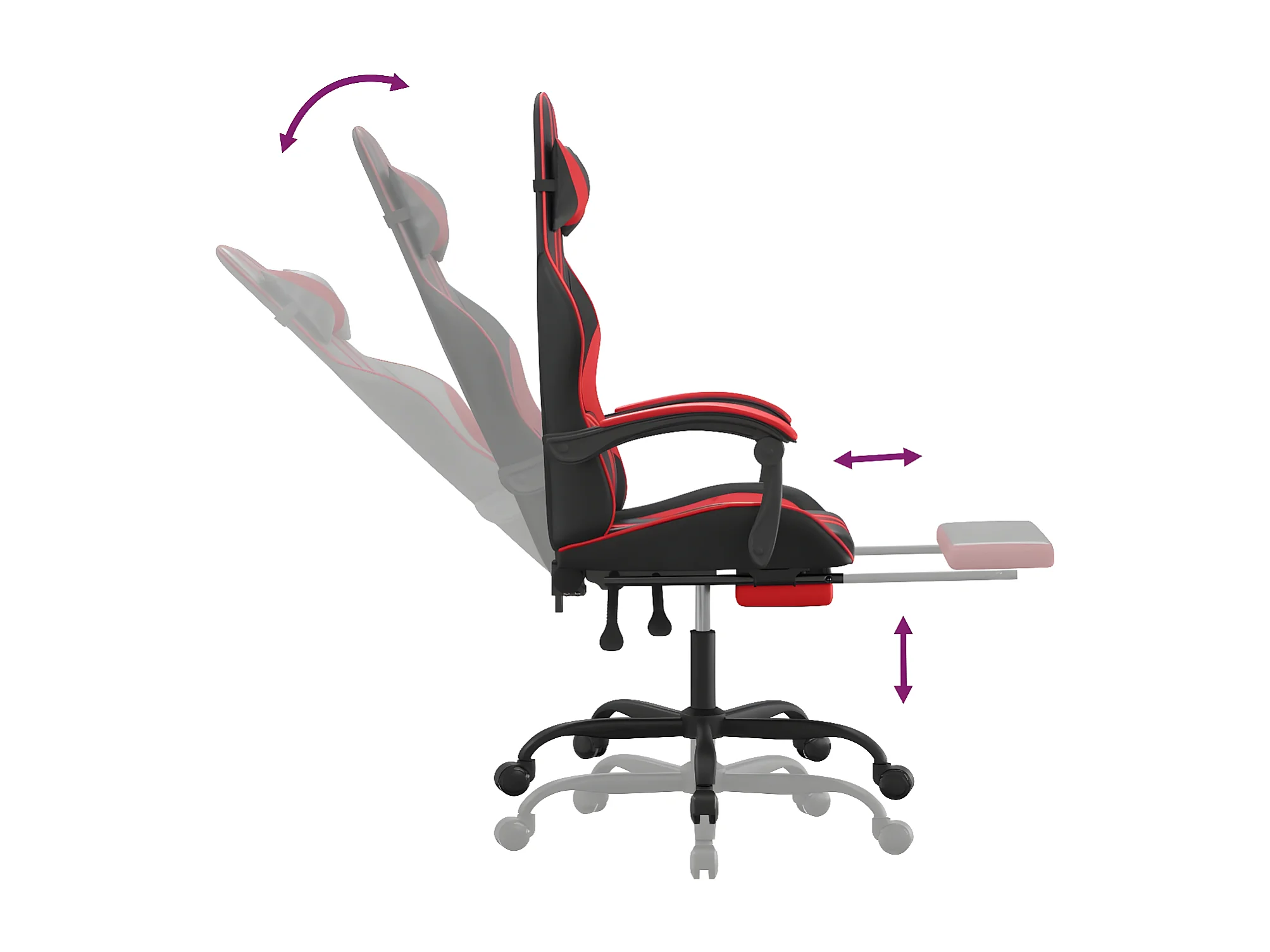 Cadeira gaming c/ apoio pés couro artificial preto e vermelho