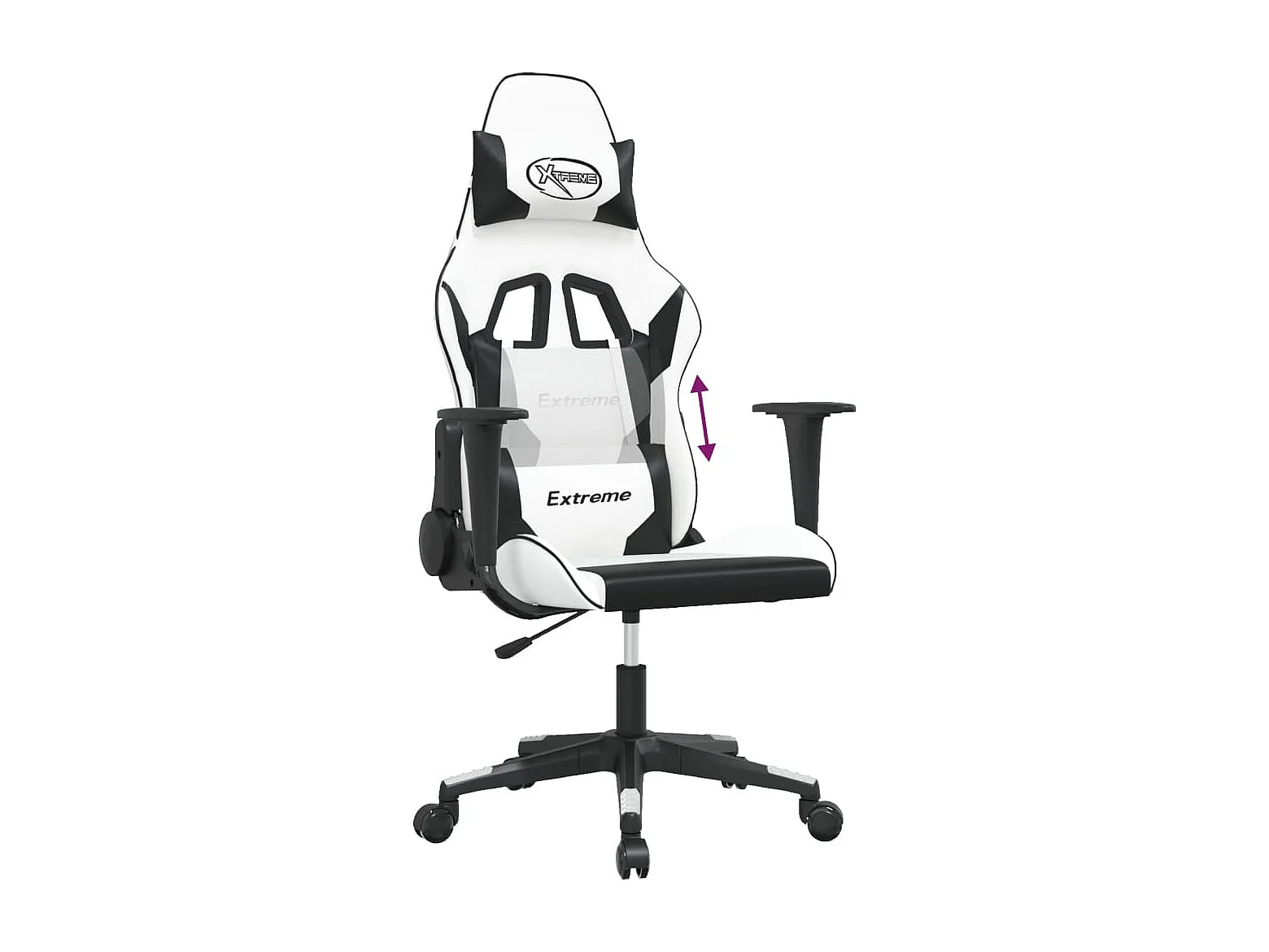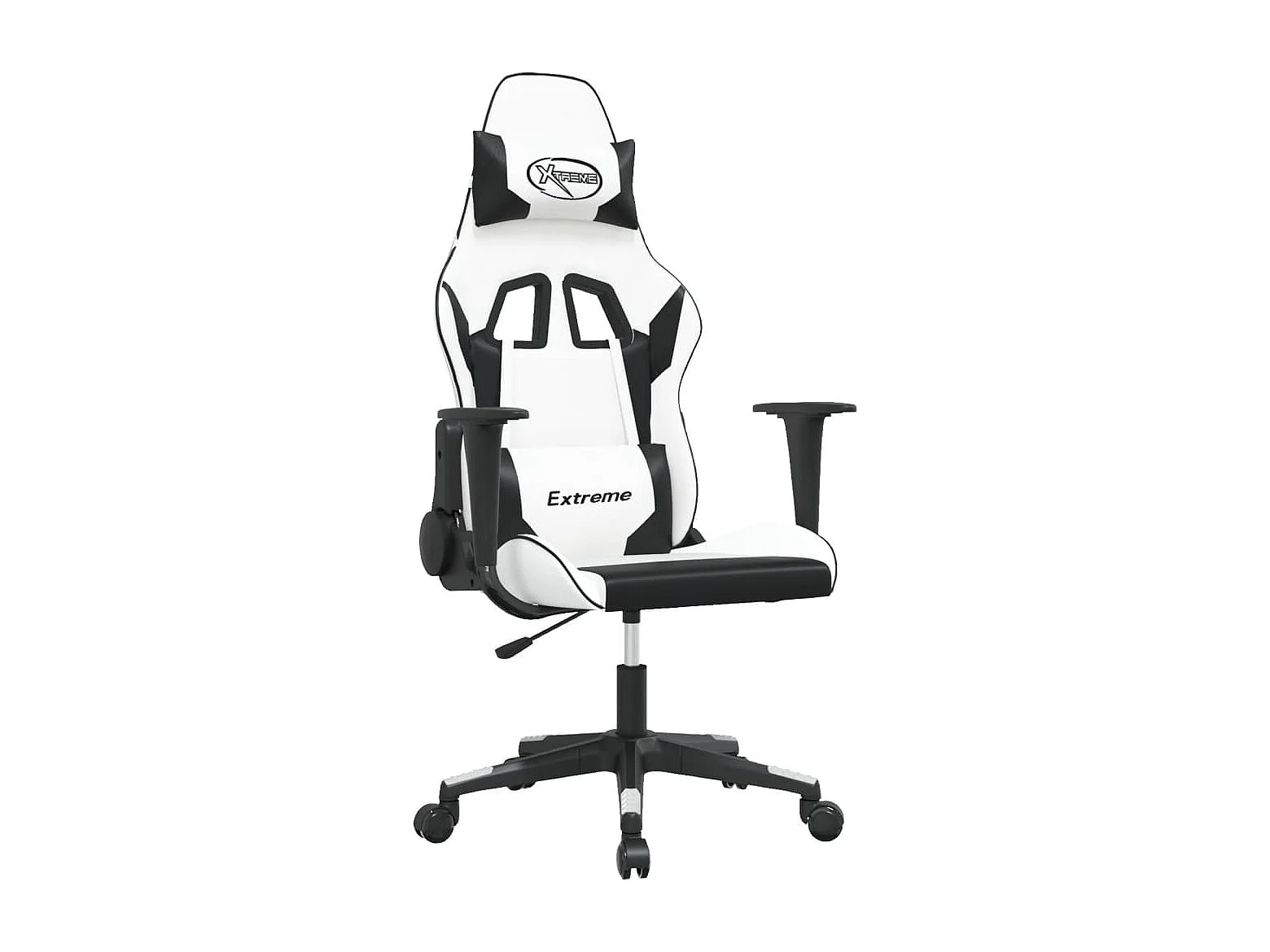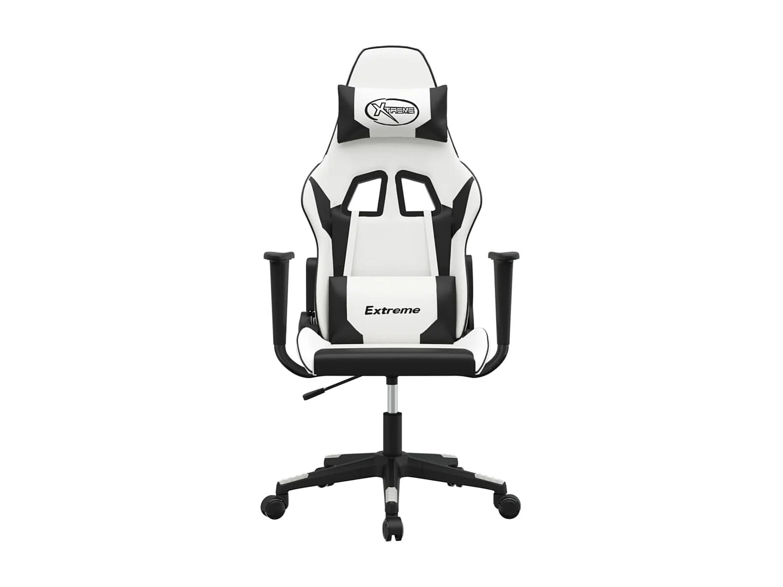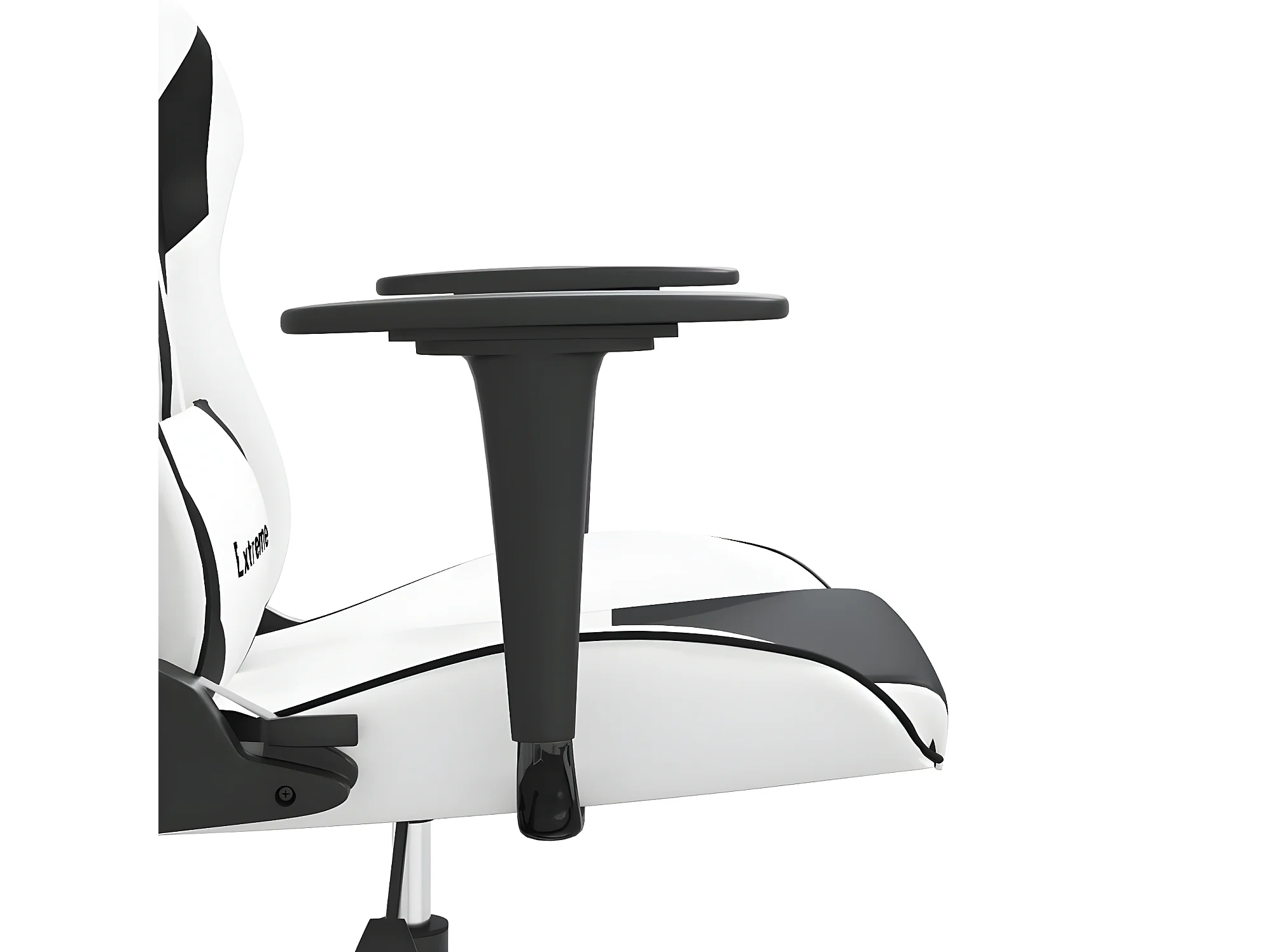 Cadeira gaming massagens c/ apoio pés couro artif. preto/branco