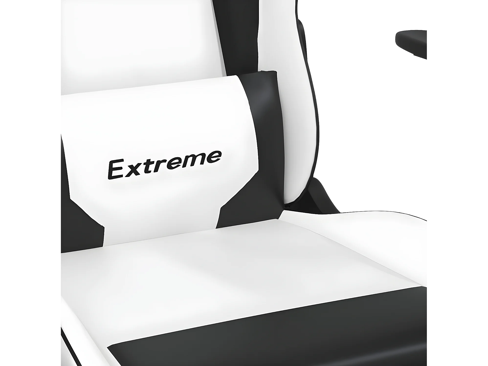 Cadeira gaming massagens c/ apoio pés couro artif. Branco/preto