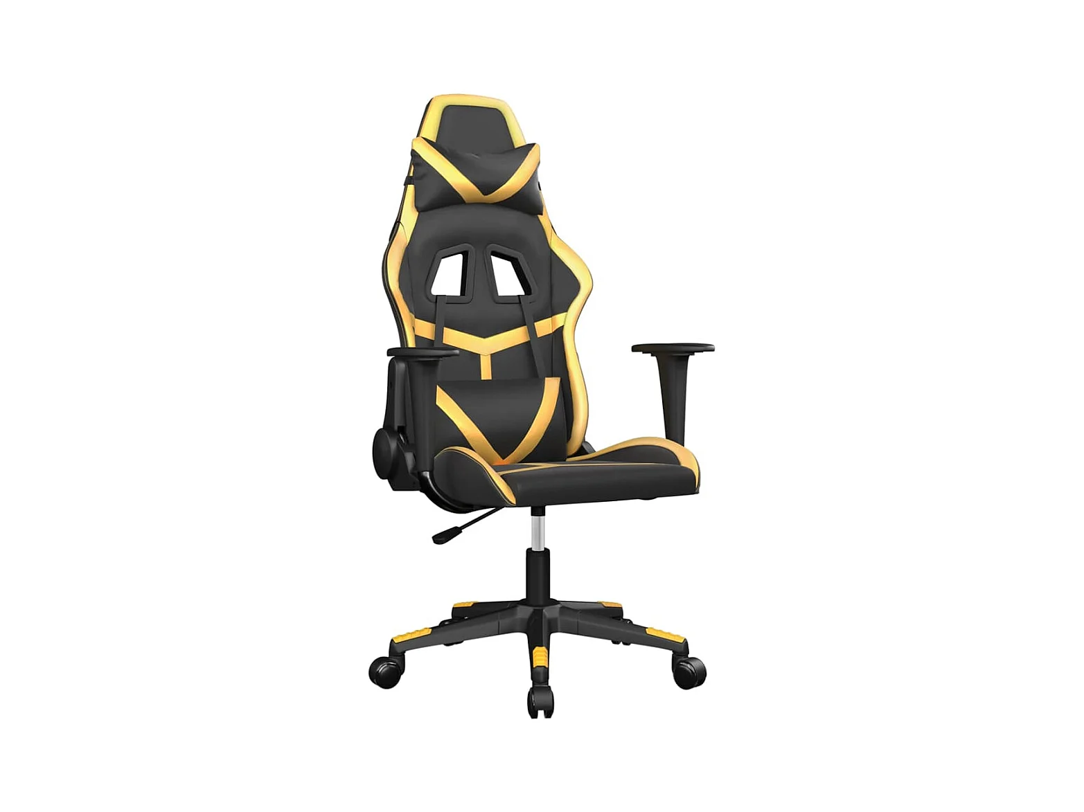 Poltrona giratória para escritório de informática estudo de videogames com apoio para pés Ouro e imitação de couro dourado 02_0024218