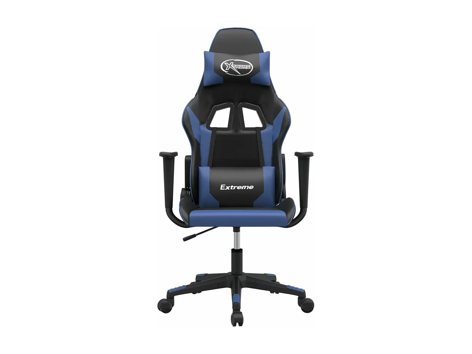 Cadeira gaming massagens c/ apoio pés couro artif. preto/azul