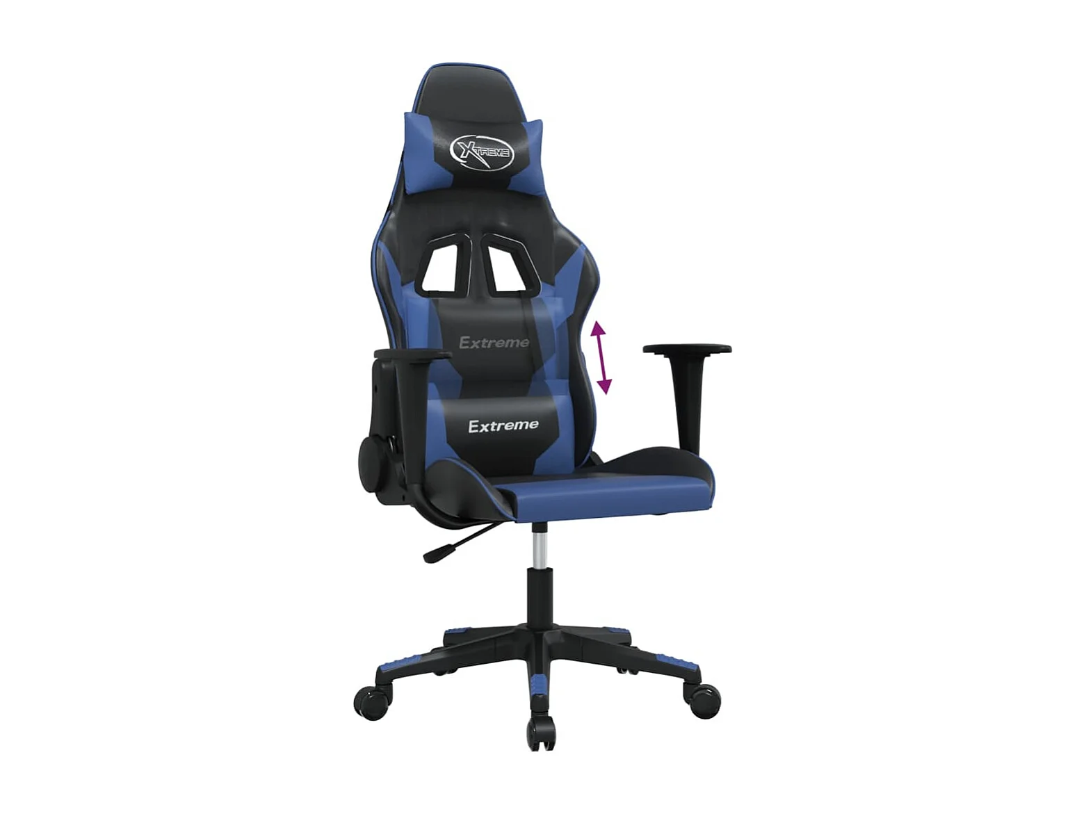 Cadeira gaming giratória c/ apoio pés couro artif. preto/azul