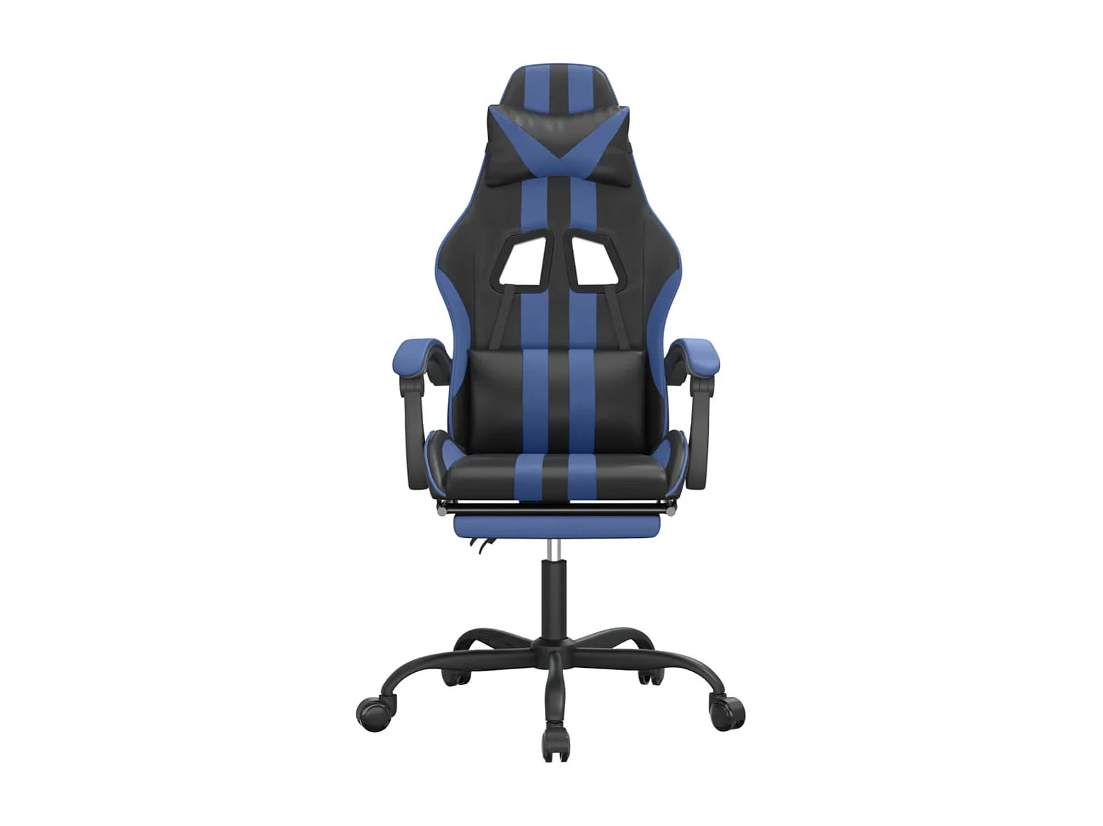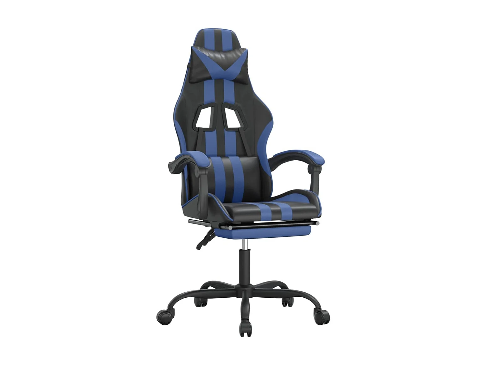 Cadeira gaming giratória c/ apoio pés couro artif. preto/azul