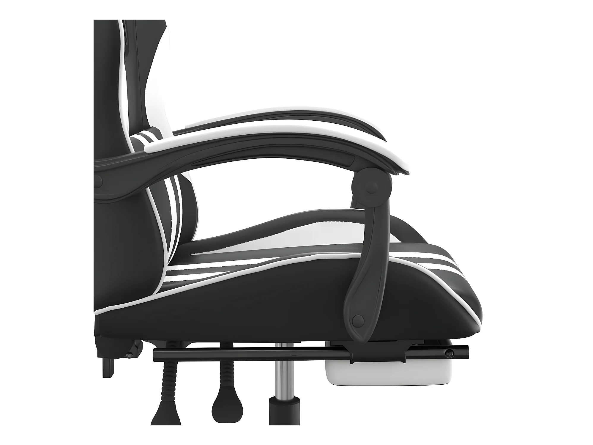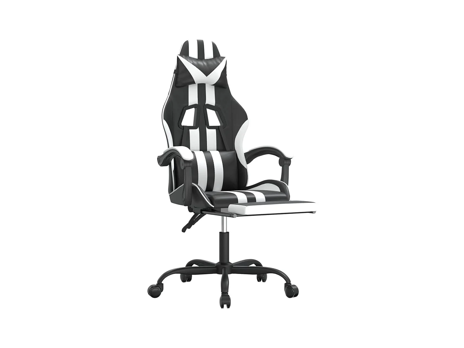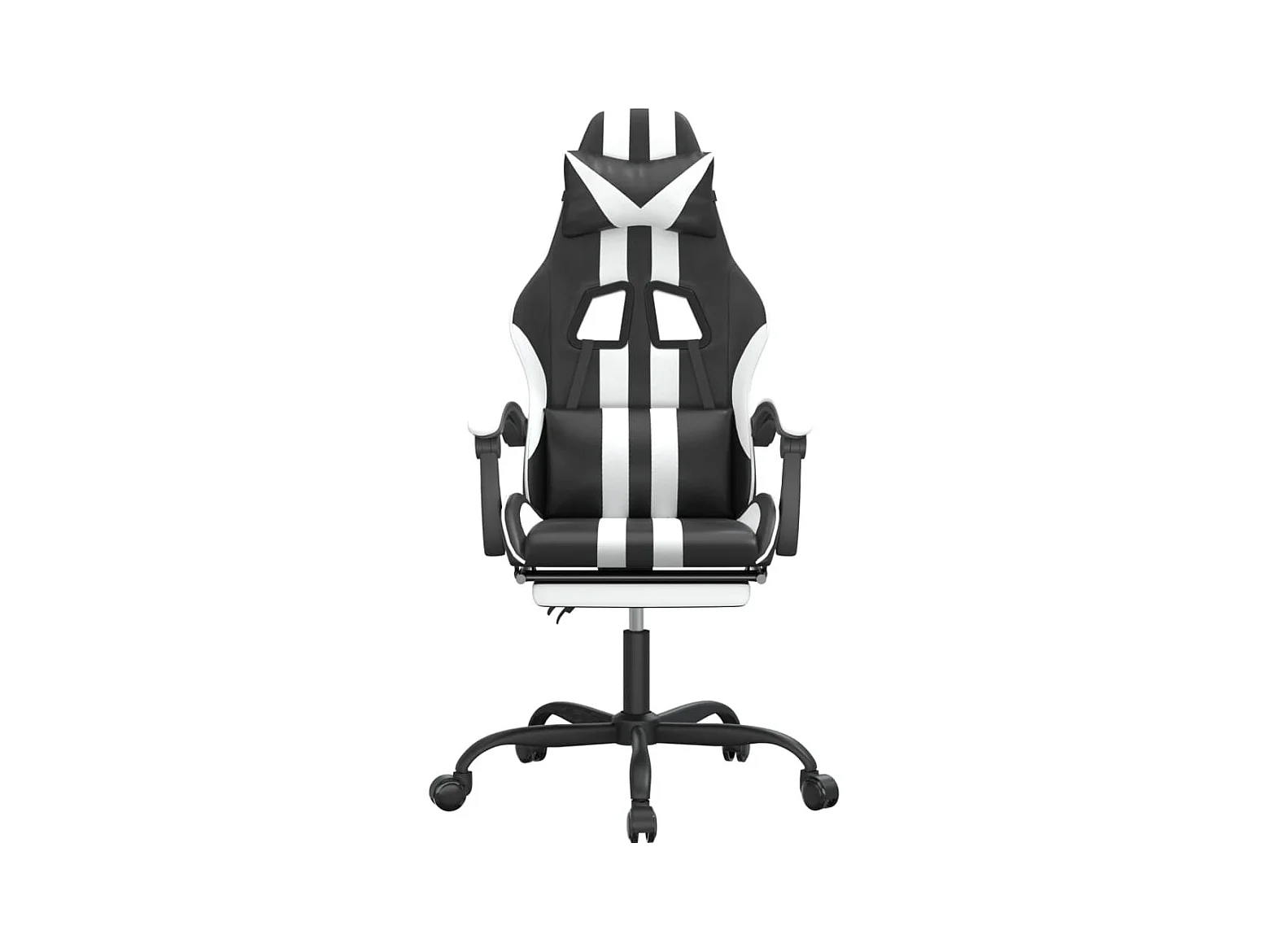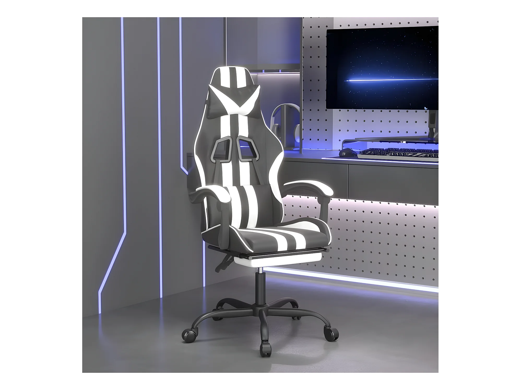 Cadeira gaming giratória c/ apoio pés couro artif. preto/branco