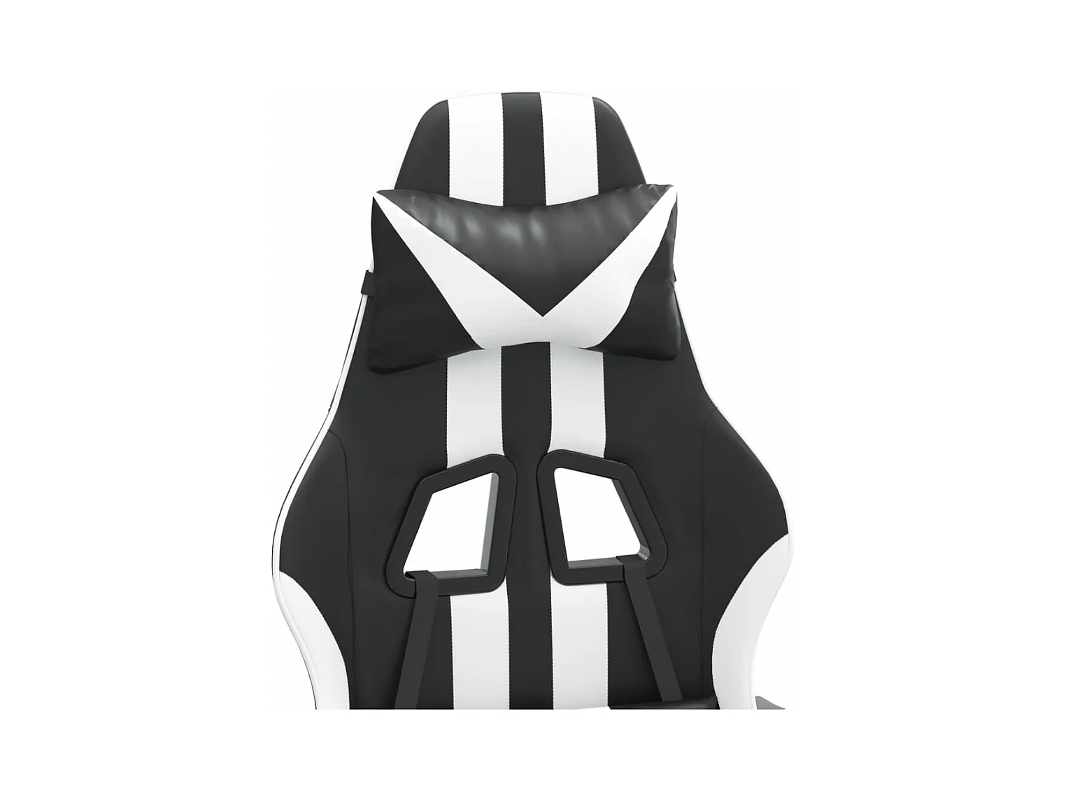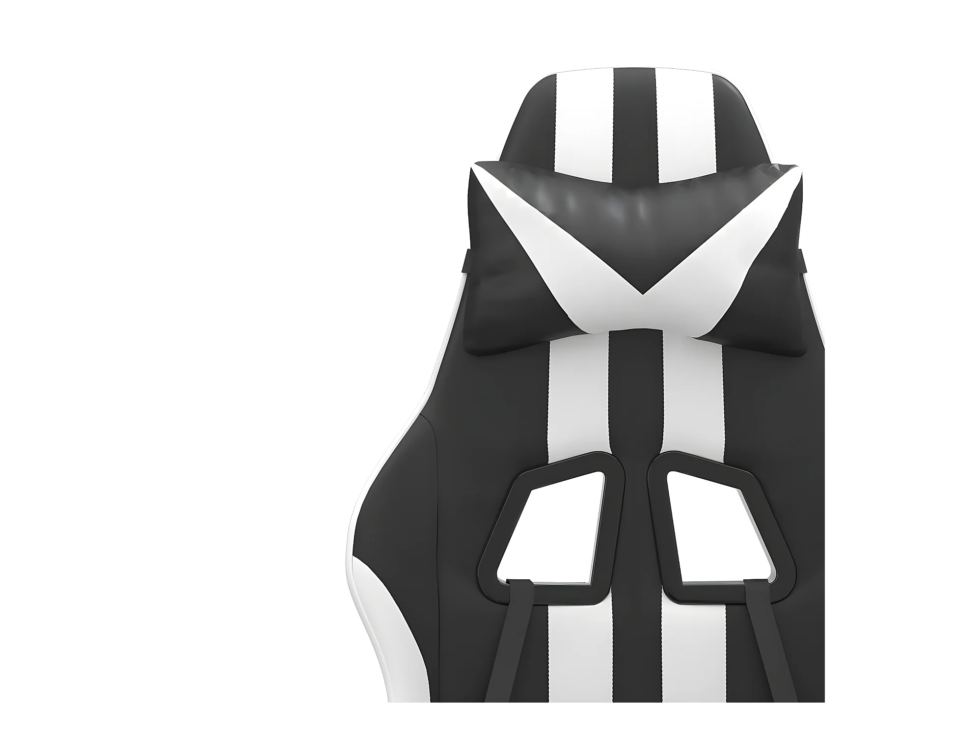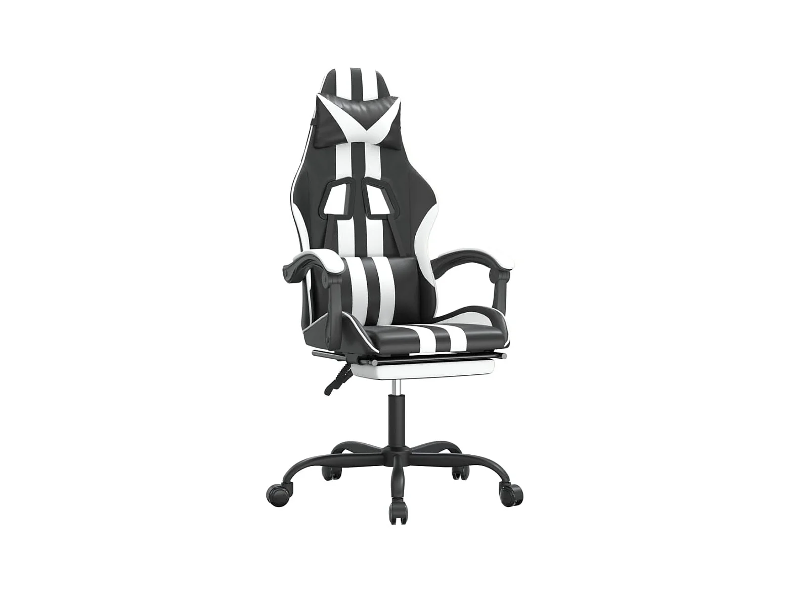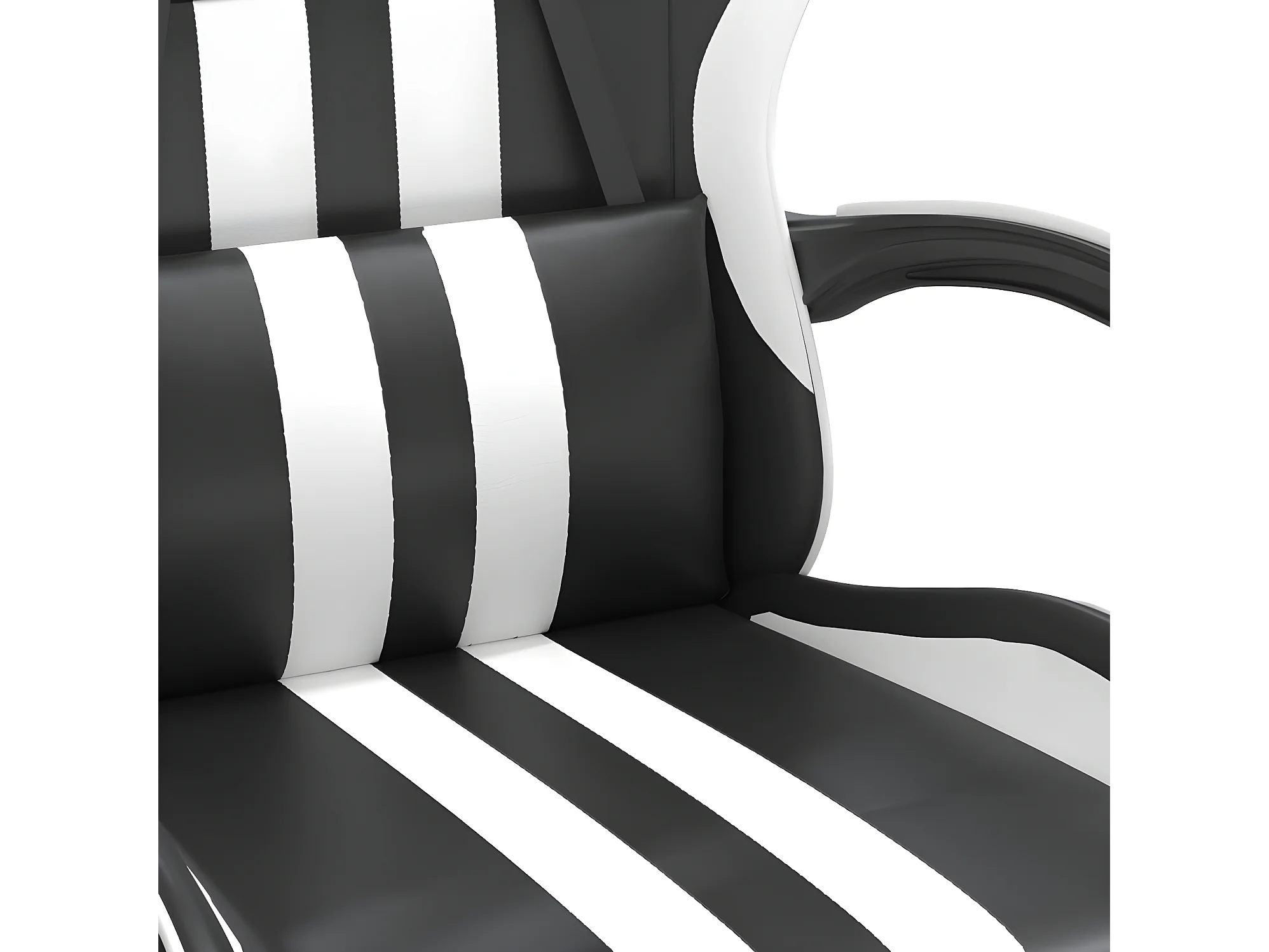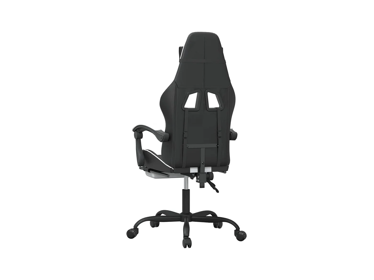 Cadeira gaming giratória c/ apoio pés couro artif. preto/branco