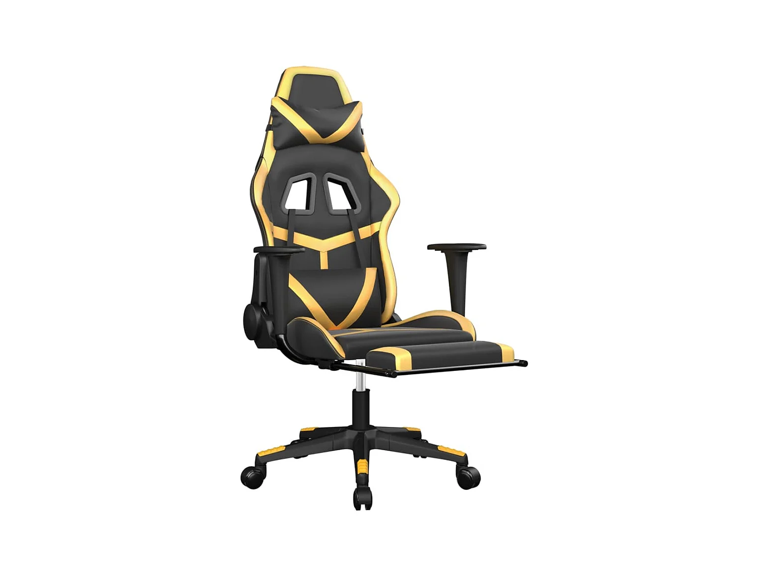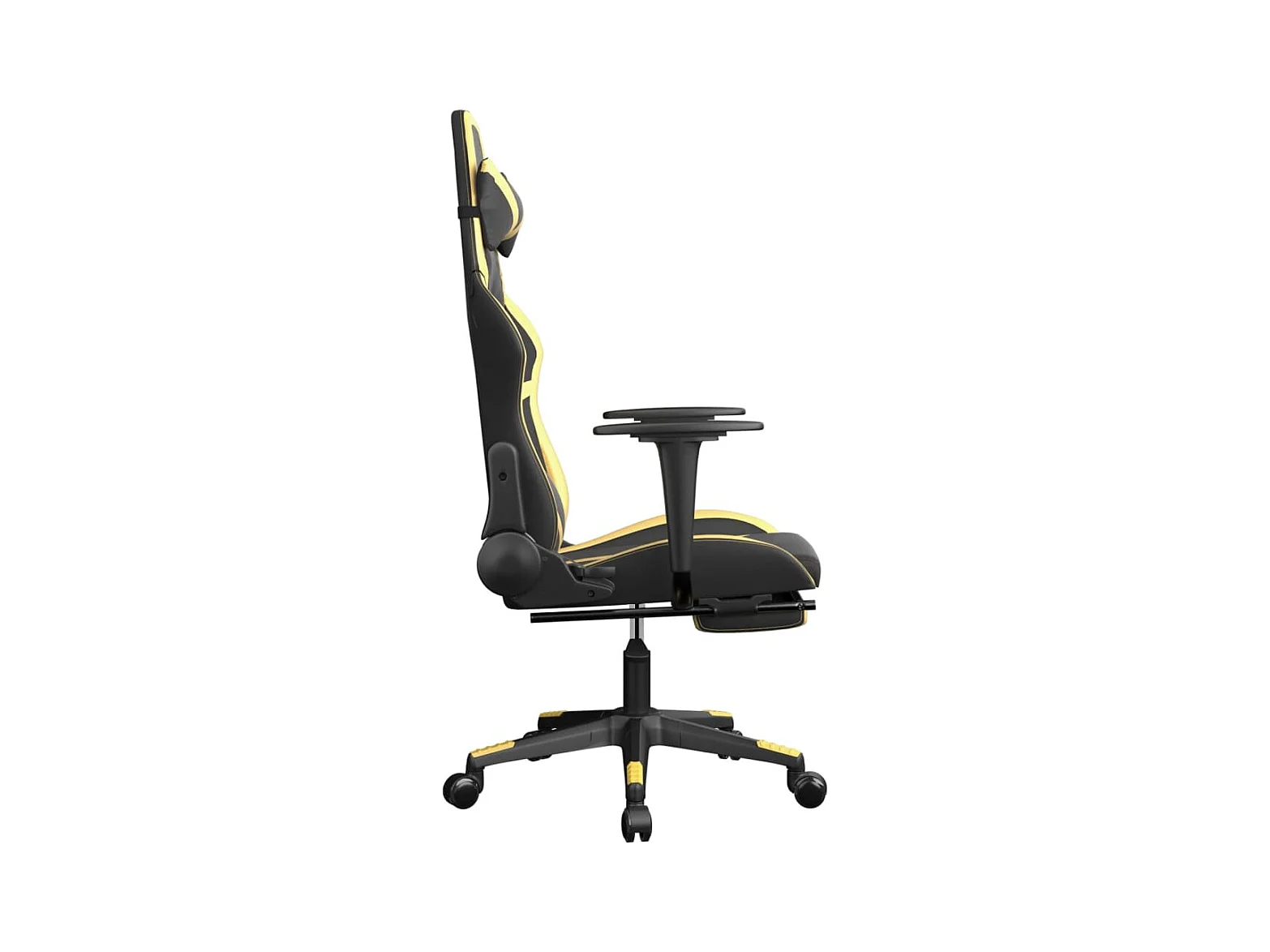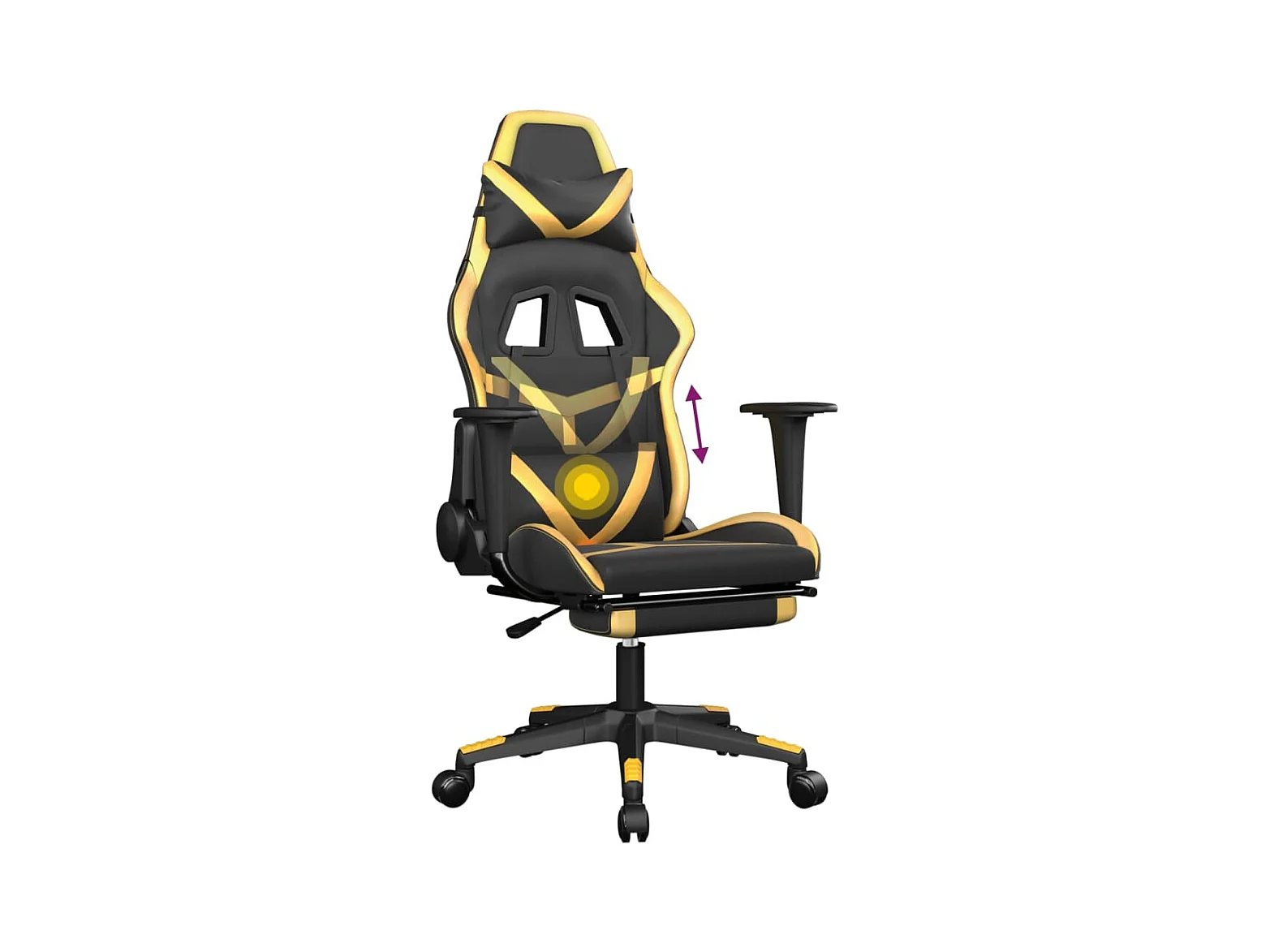 Cadeira gaming massagens c/ apoio pés couro artif. Ouro/Preto