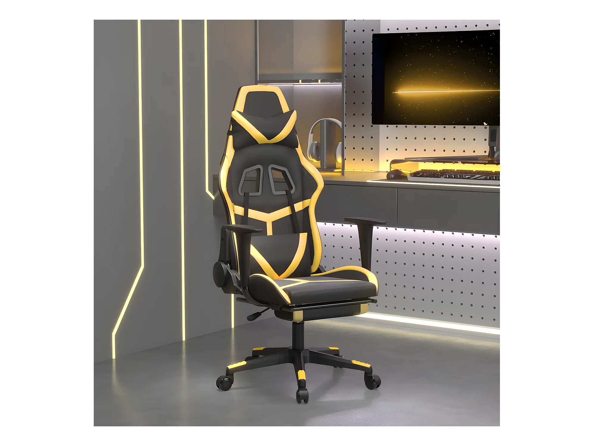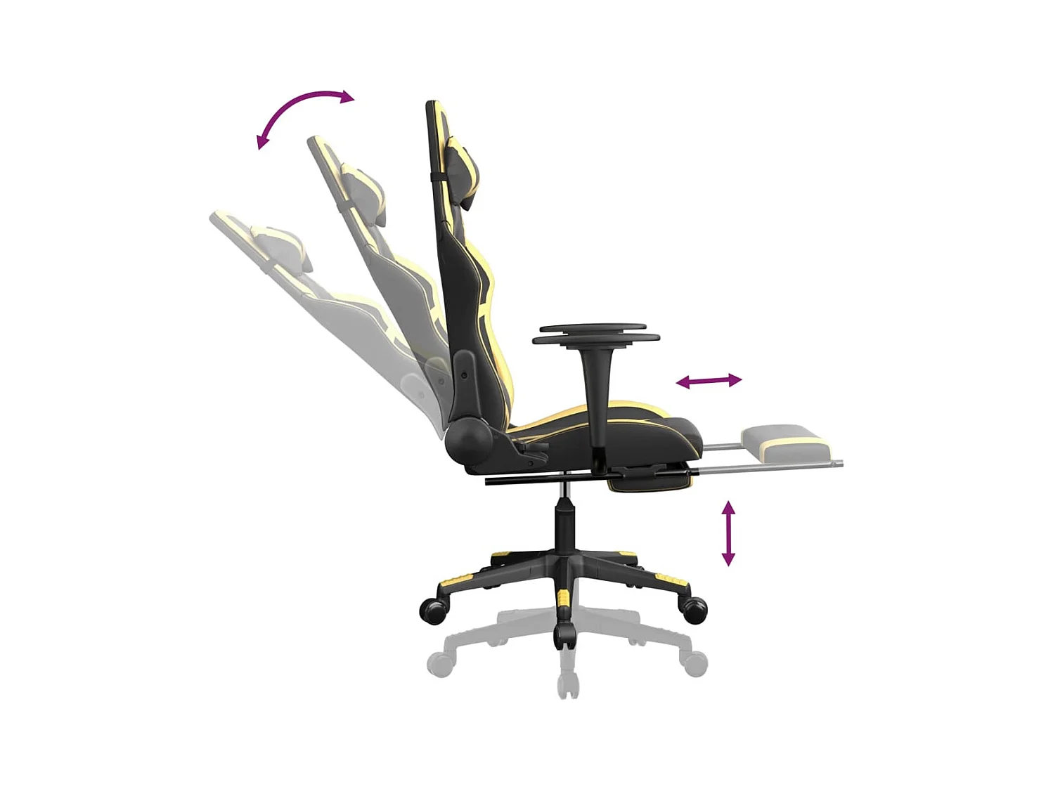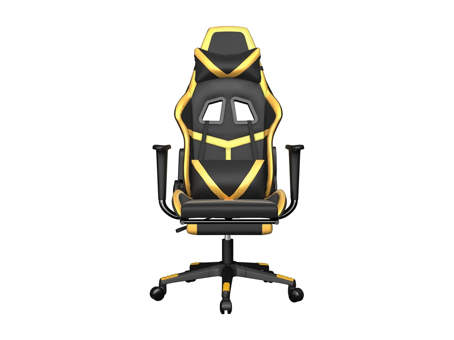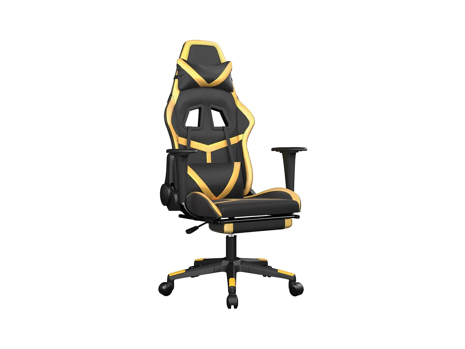 Cadeira gaming massagens c/ apoio pés couro artif. Ouro/Preto