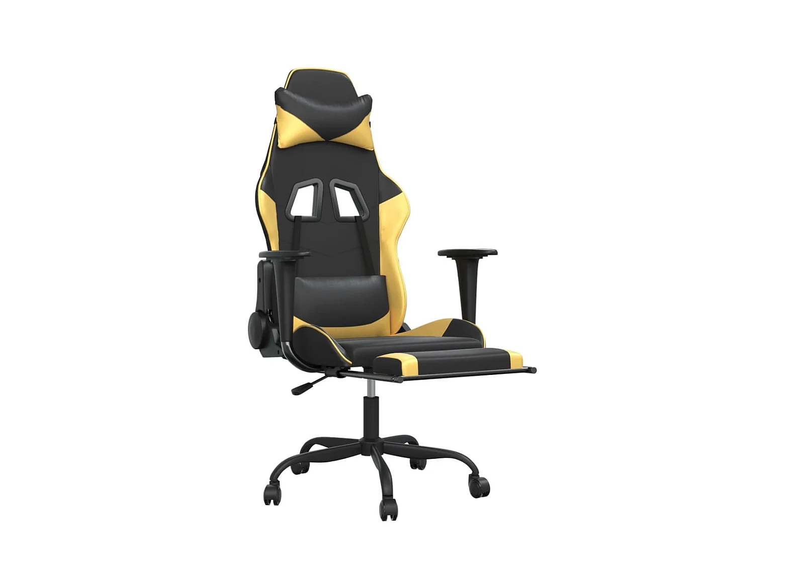 Cadeira de massagem para jogos com apoio para os pés em couro sintético preto e dourado