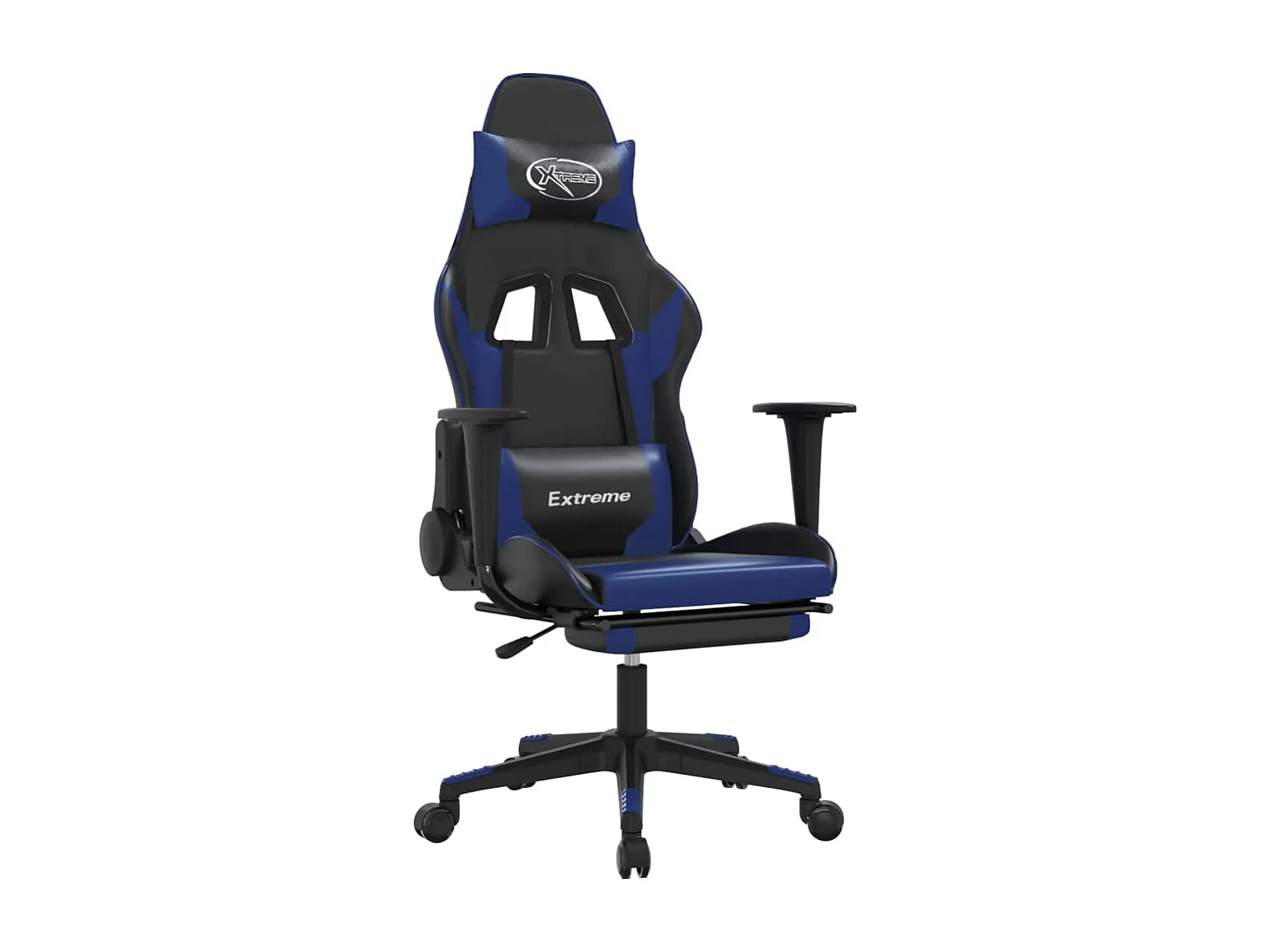 Cadeira gaming massagens c/ apoio pés couro artif. preto/azul