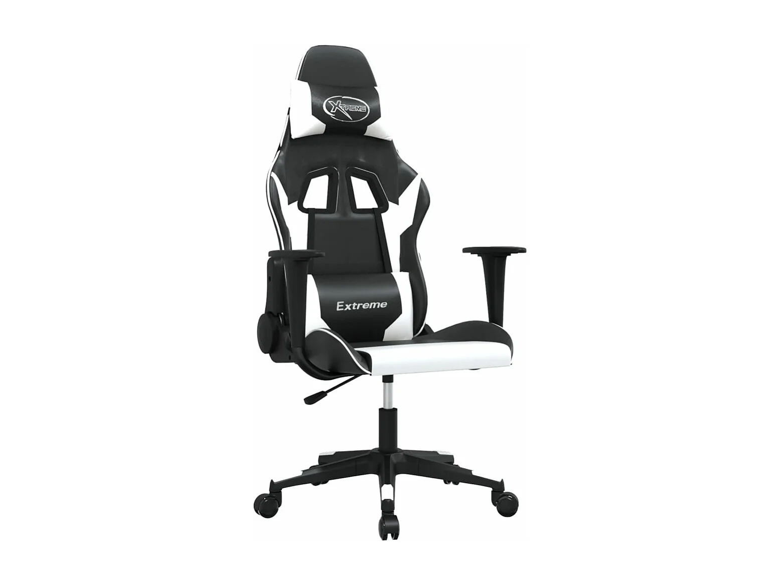 Cadeira gaming massagens couro artificial preto e branco PT858636