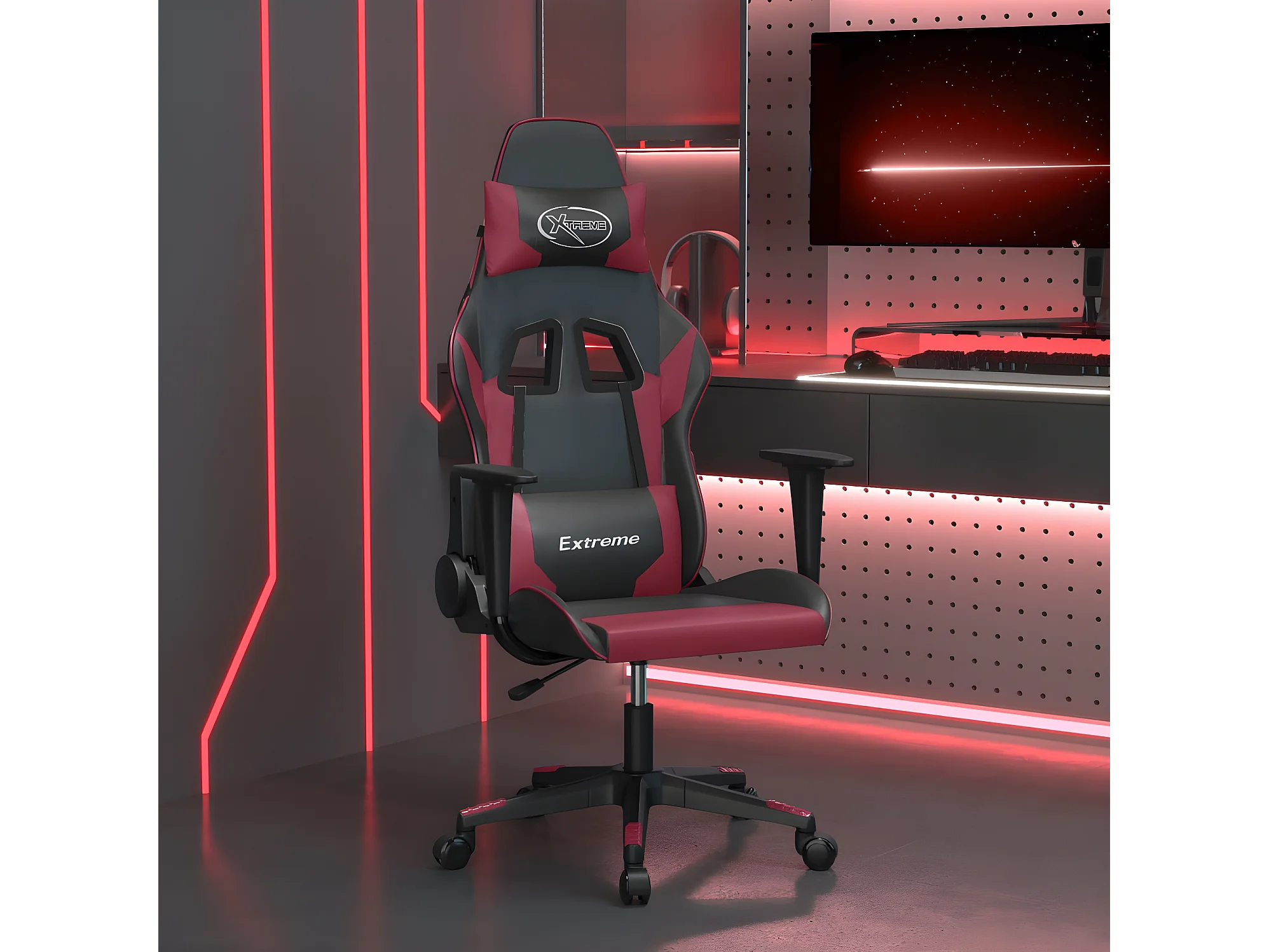Cadeira gaming massagens couro artificial preto/vermelho tinto