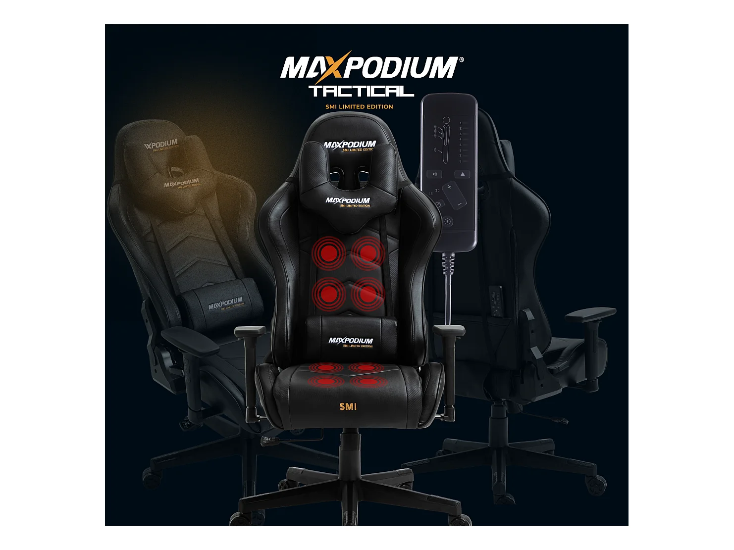 Cadeira Gaming Premium – Sistema de massagem, suporta até 150 kg – Tactical SMI, Preta