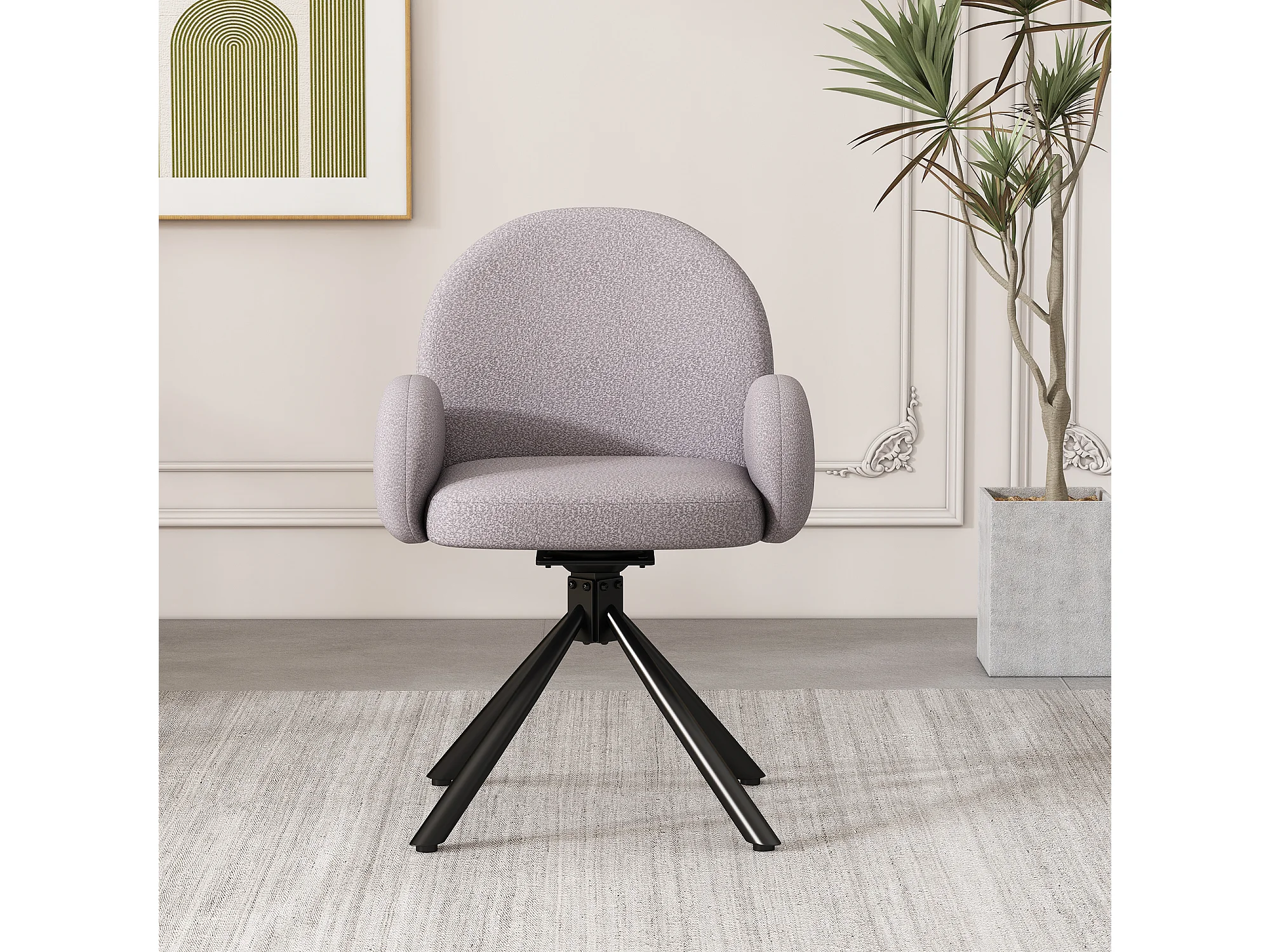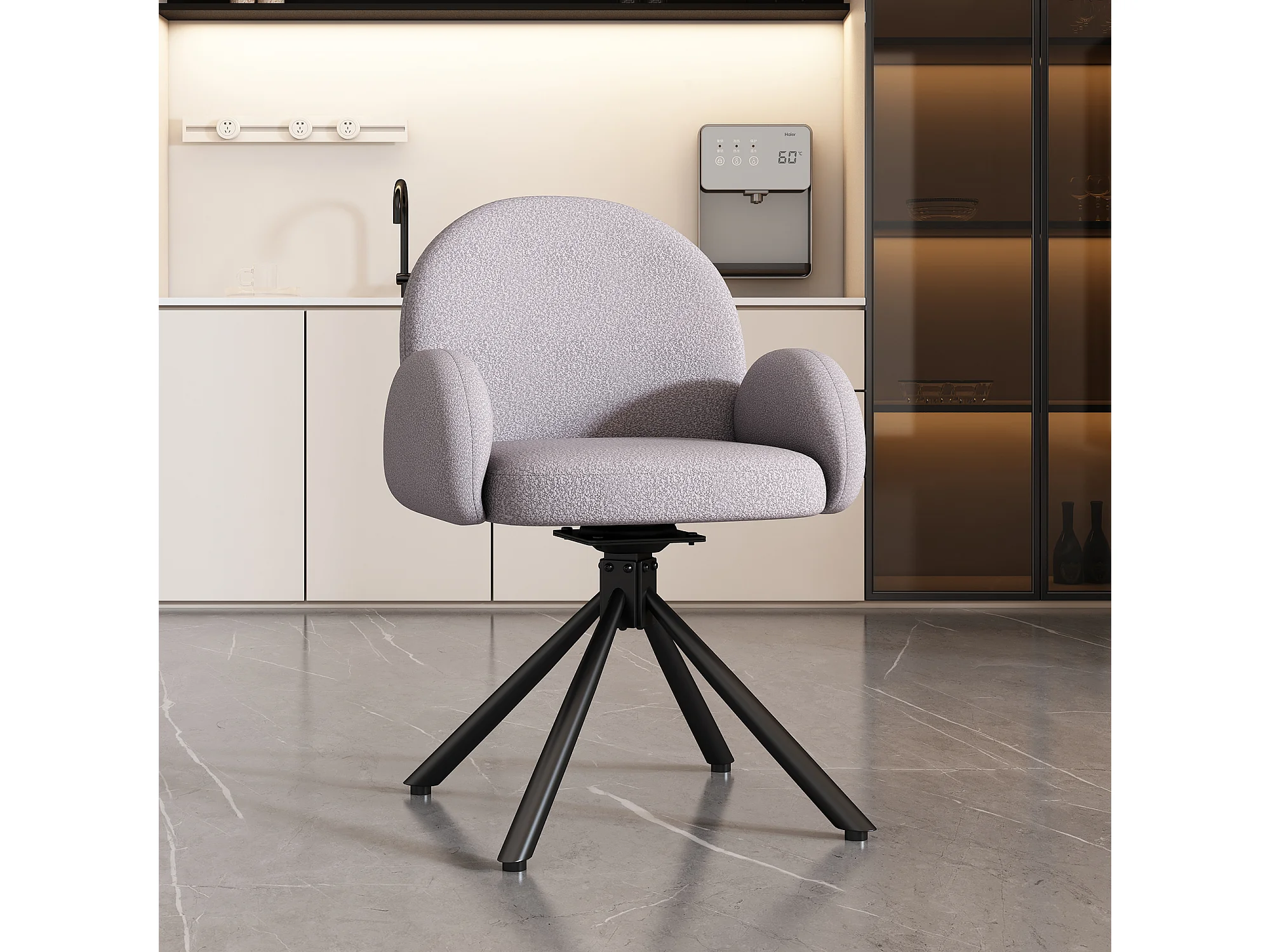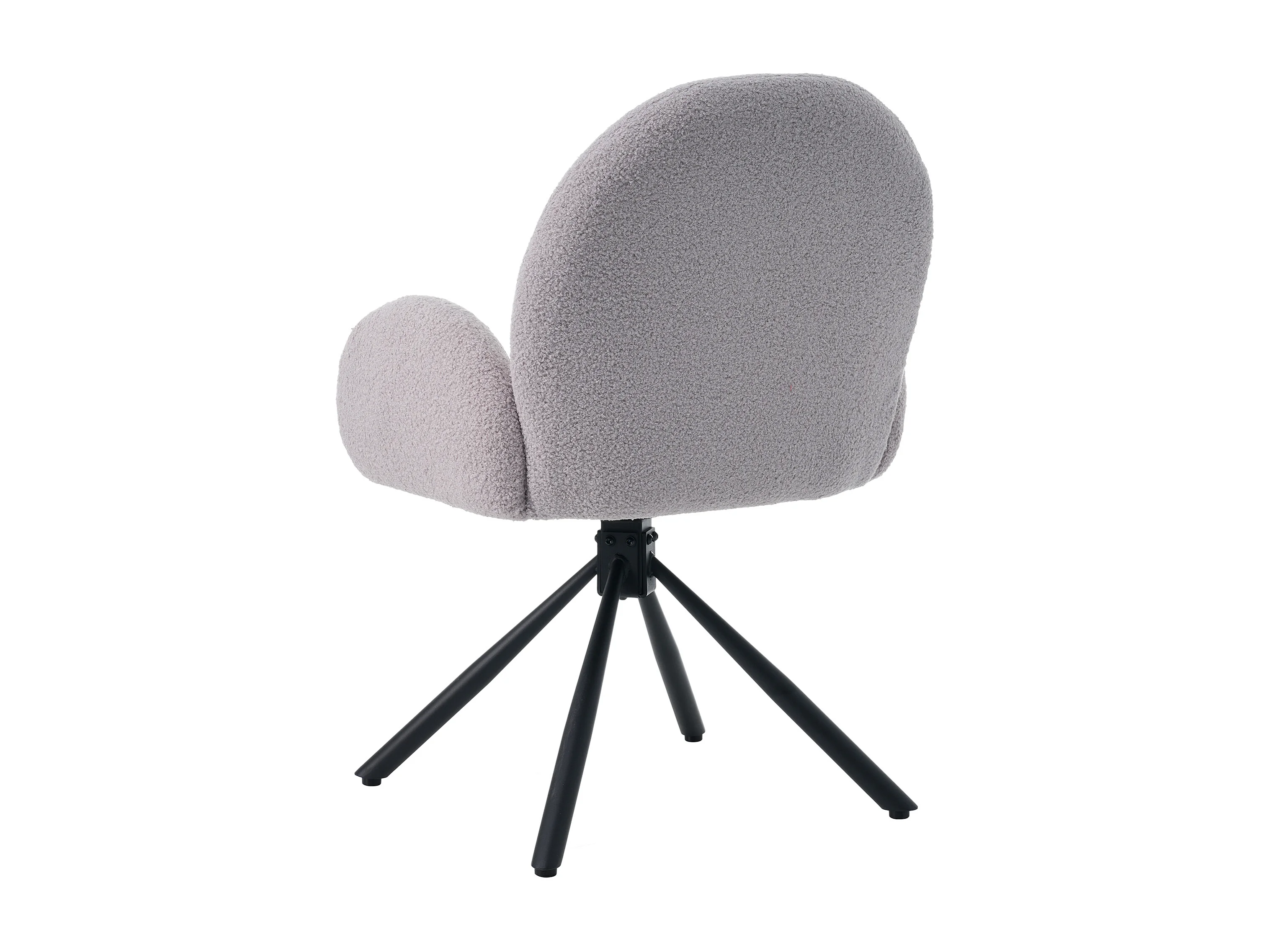 Cadeira giratória de jantar, cadeira de sala, tecido sherpa, com braços, estilo moderno, cinza