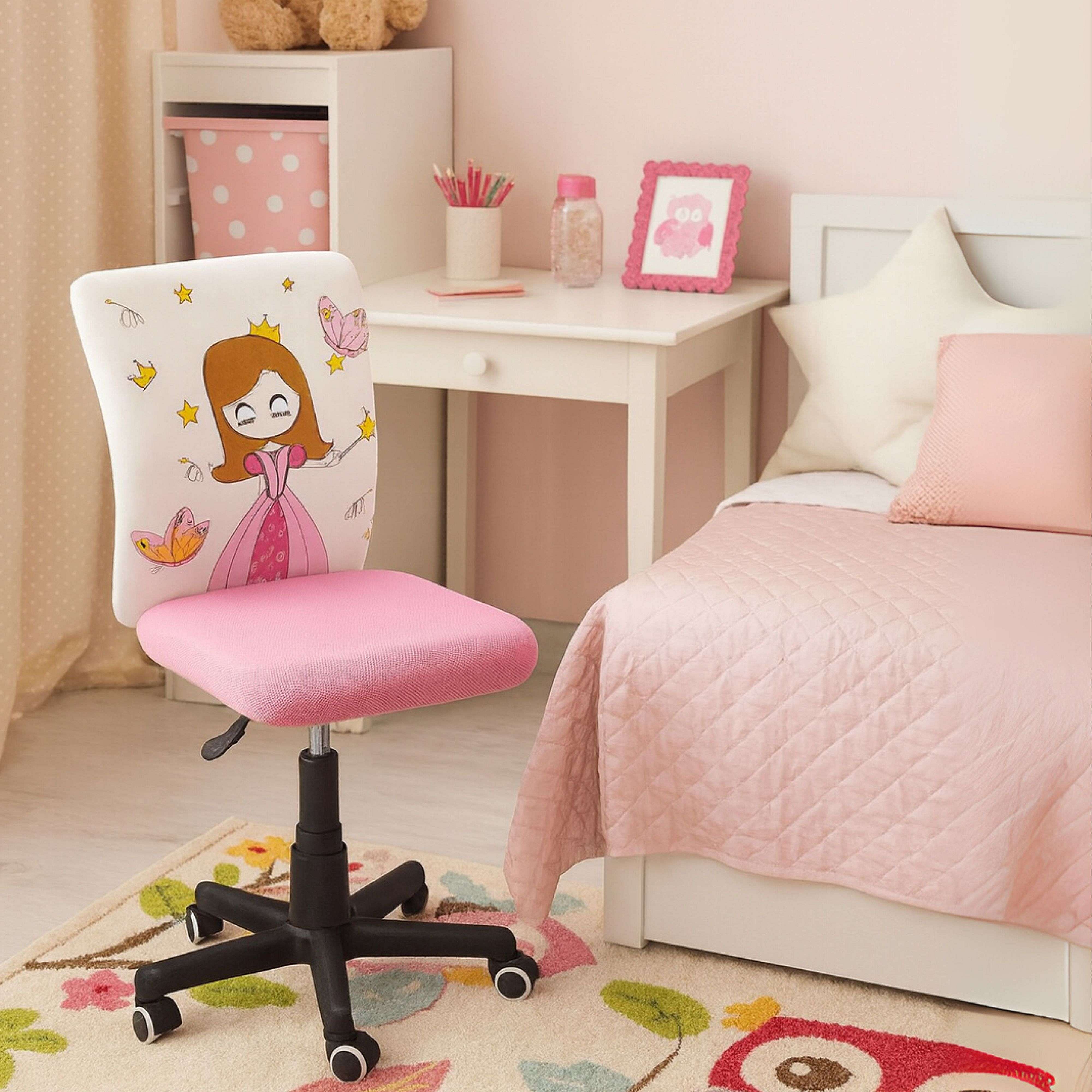 Cadeira de escritório para criança - Giratória e regulável em altura - Tecido - Rosa - ZAMBEZI