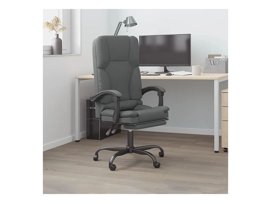 Cadeira massagens escritório reclinável tecido cinzento-escuro