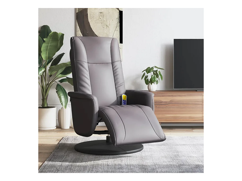 Cadeira massagens reclinável comapoio pés couro artificial cinza SHL999059