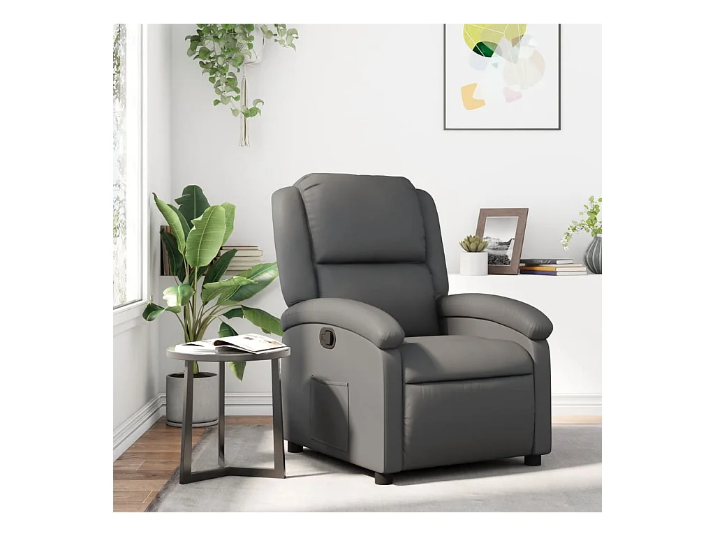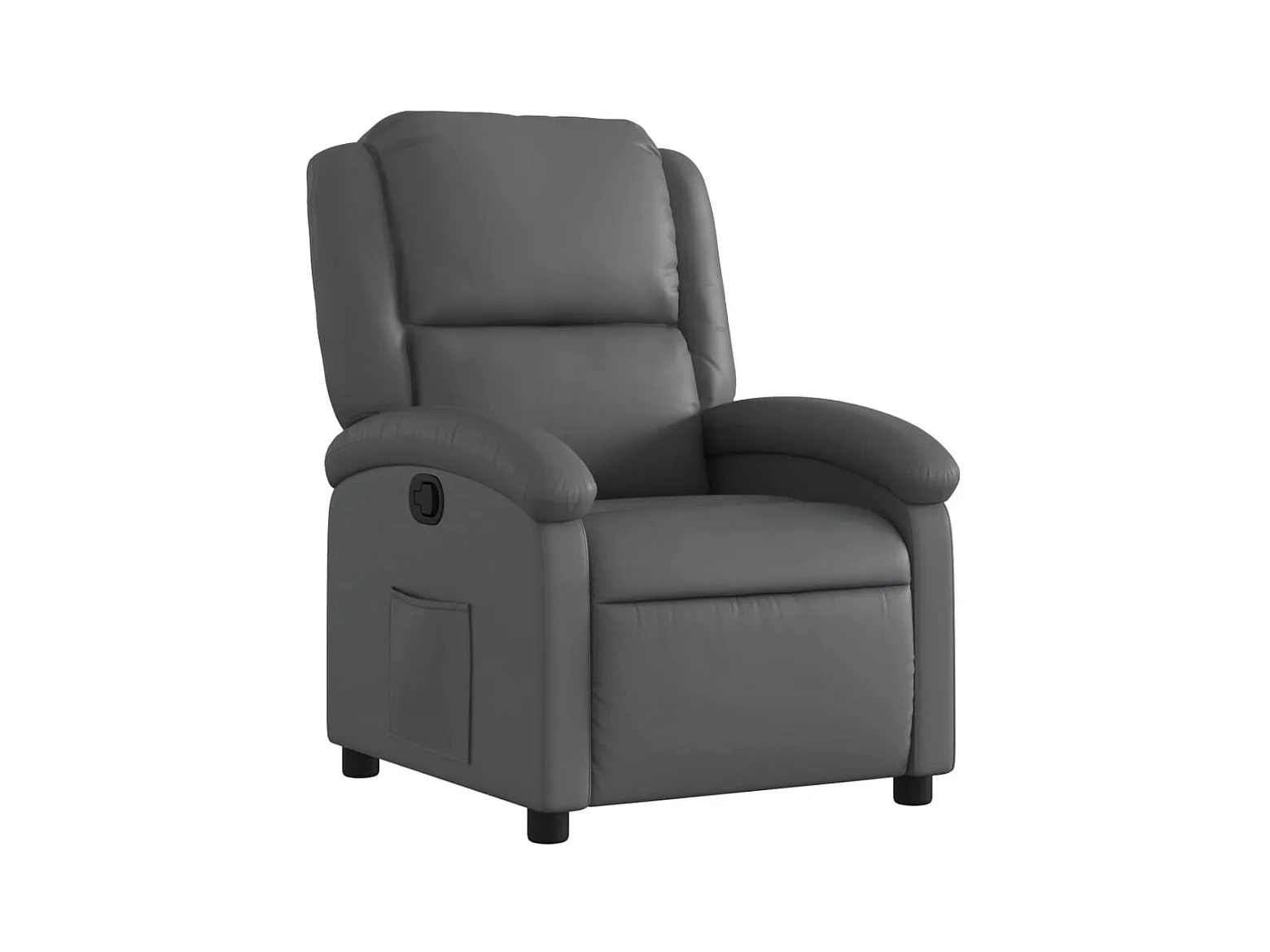 Poltrona reclinável em couro sintético cinza com apoio para pés