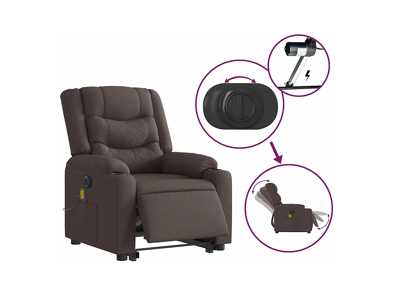 Poltrona reclinável elétrica de massagem em tecido marrom