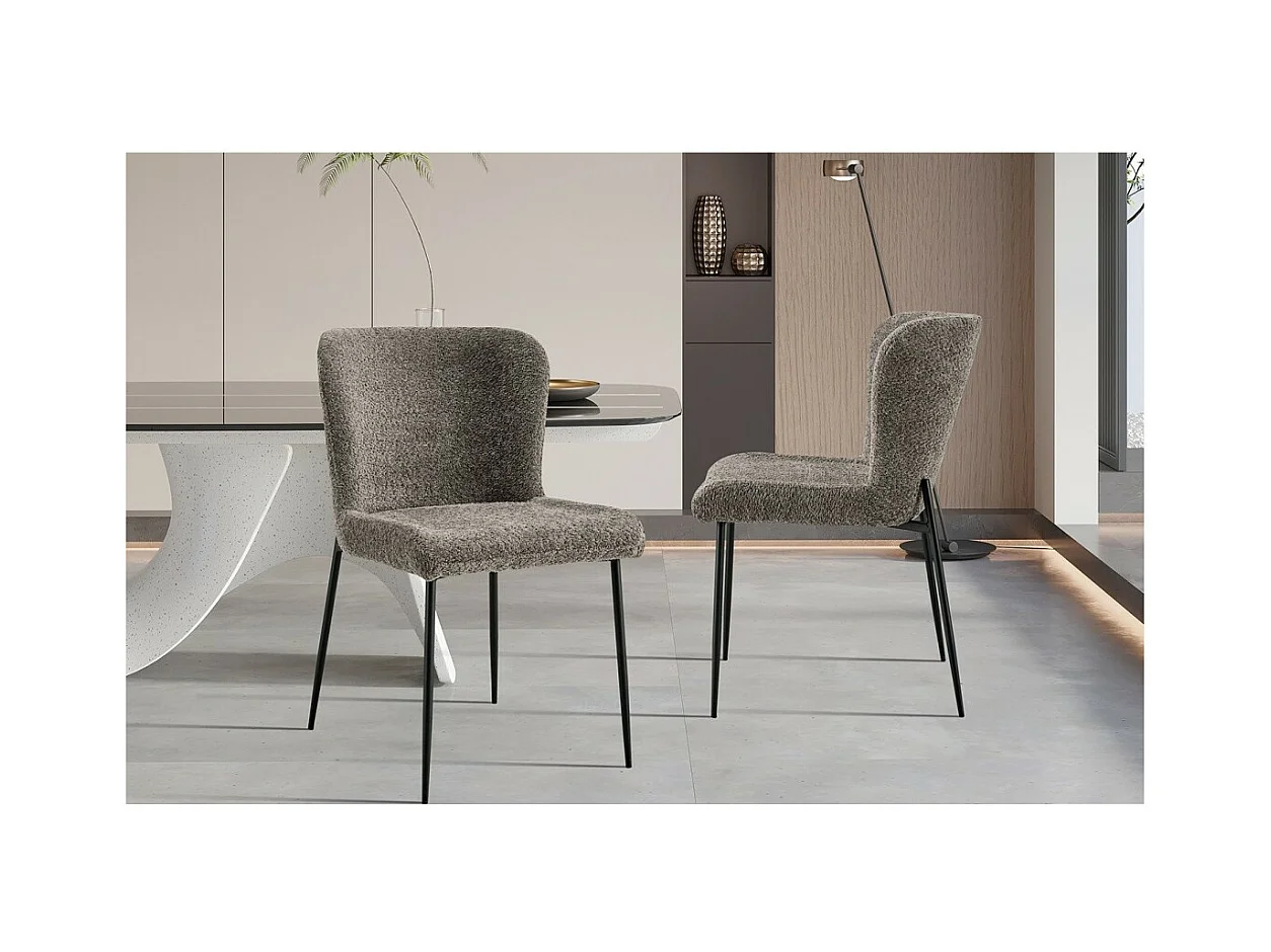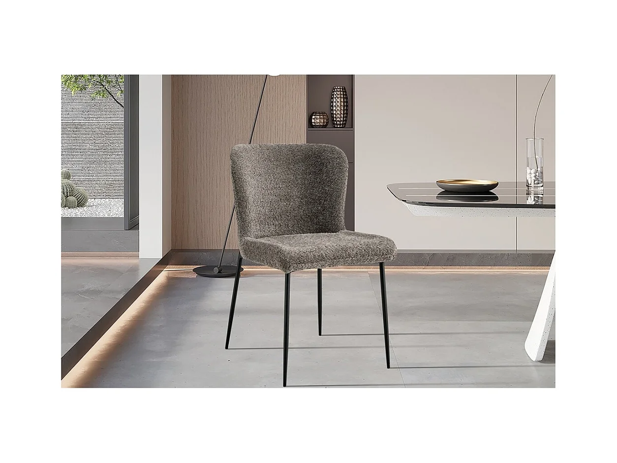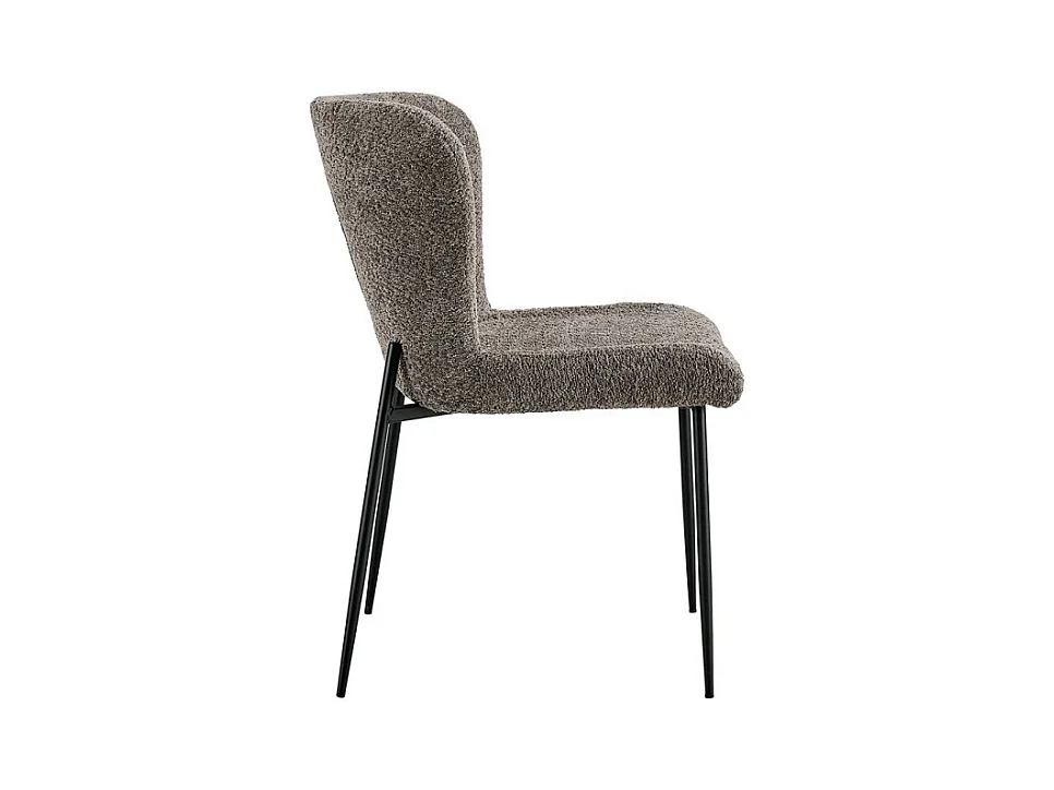 Cadeira com revestimento bouclé para sala de jantar na cor cinza escuro. Coleção ALCAN