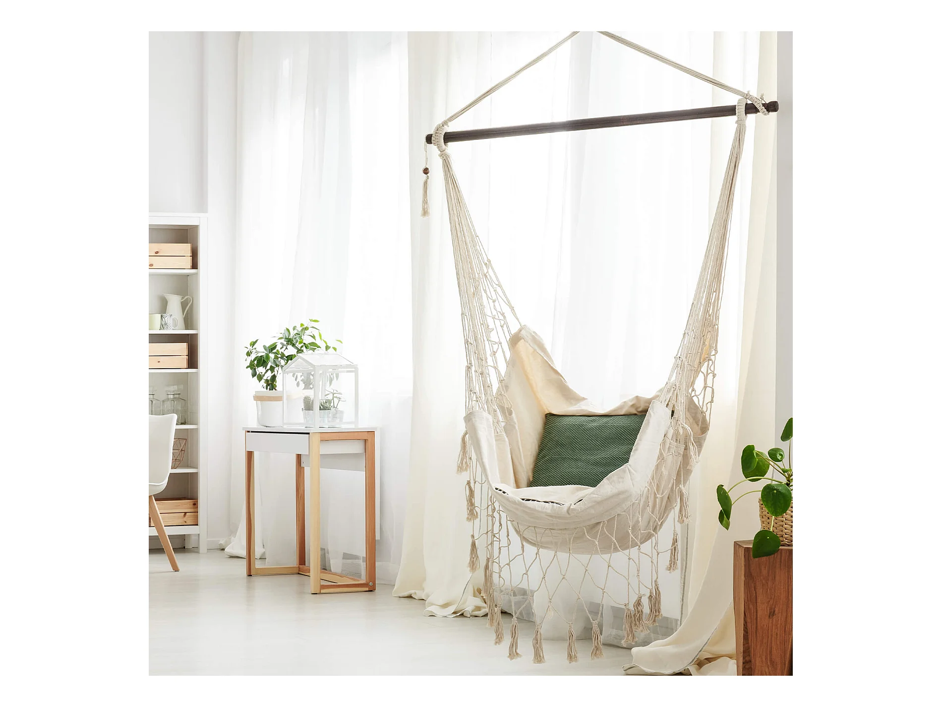Cadeira Suspensa Bege Cadeira de baloiço para Jardim com Almofadas Suspensas