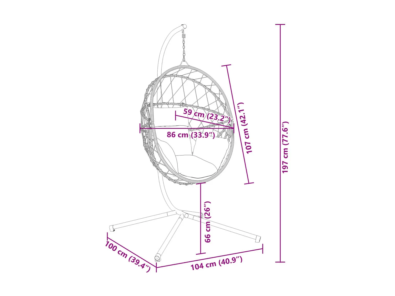 Cadeira forma de ovo suspensa c/ suporte vime/aço antracite PT874721