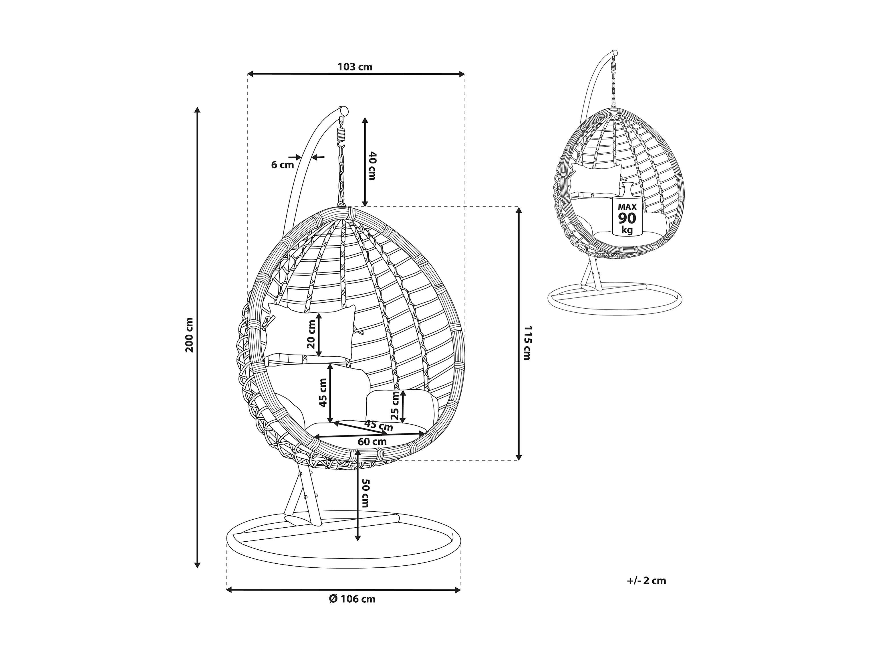 Cadeira Suspensa com Suporte FANO Branco