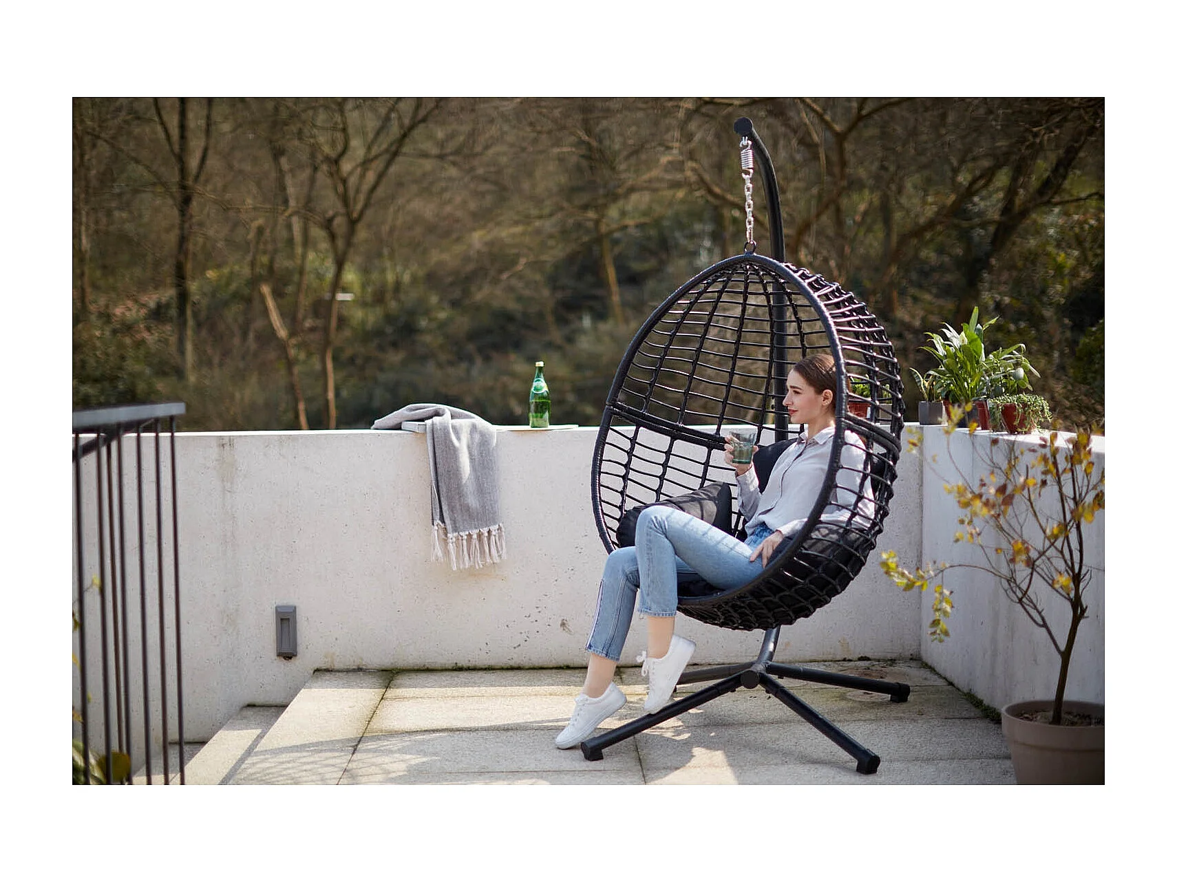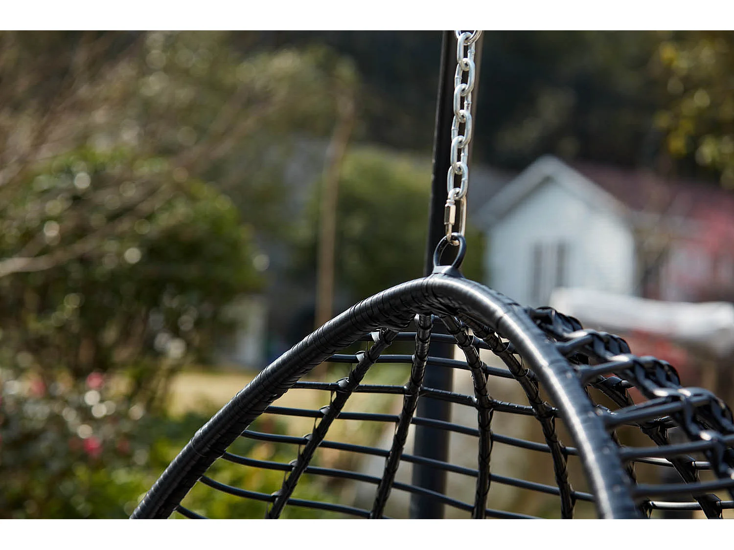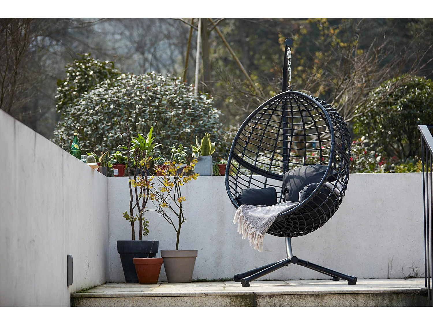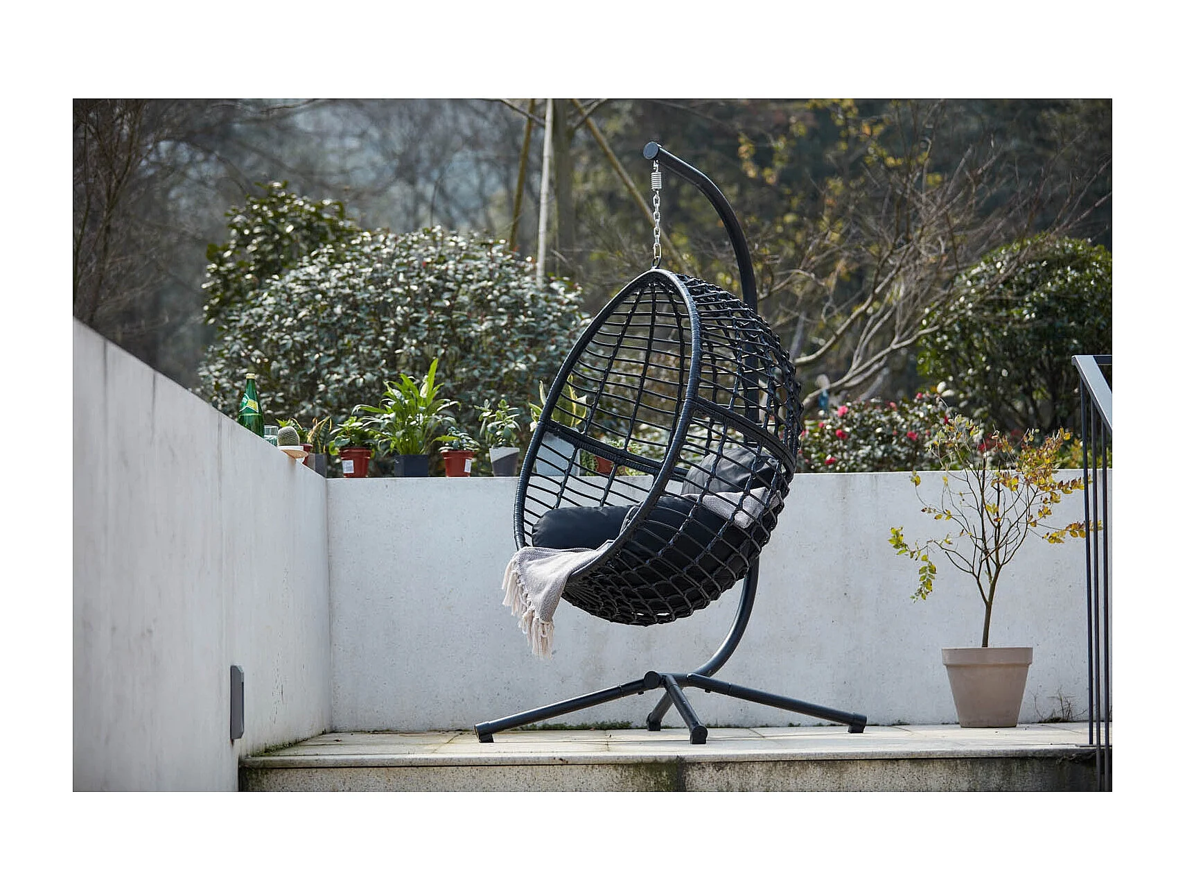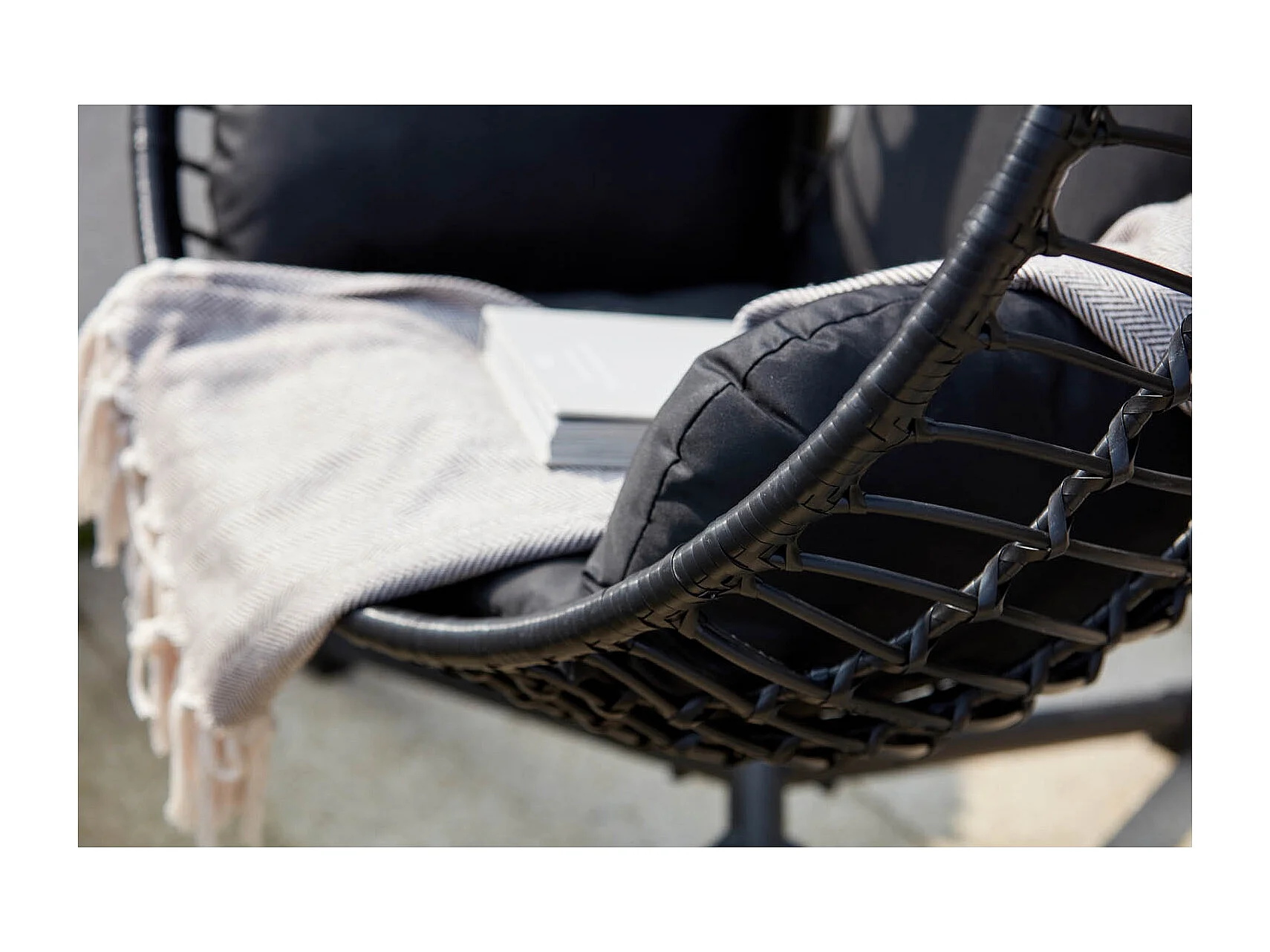 Cadeira suspensa preta em resina trançada AUROA com suporte em aço - Design elegante para interior e exterior