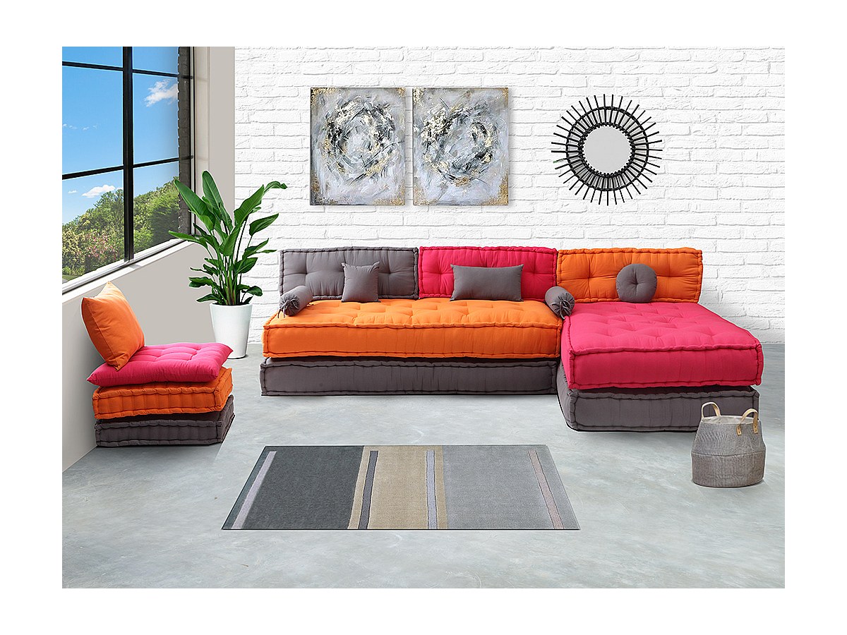 Cadeirão: desfrute de um assento suplementar que vai completar o sofá modular. Este cadeirão é composto por 3 colchões de chão e por uma almofada de encosto.