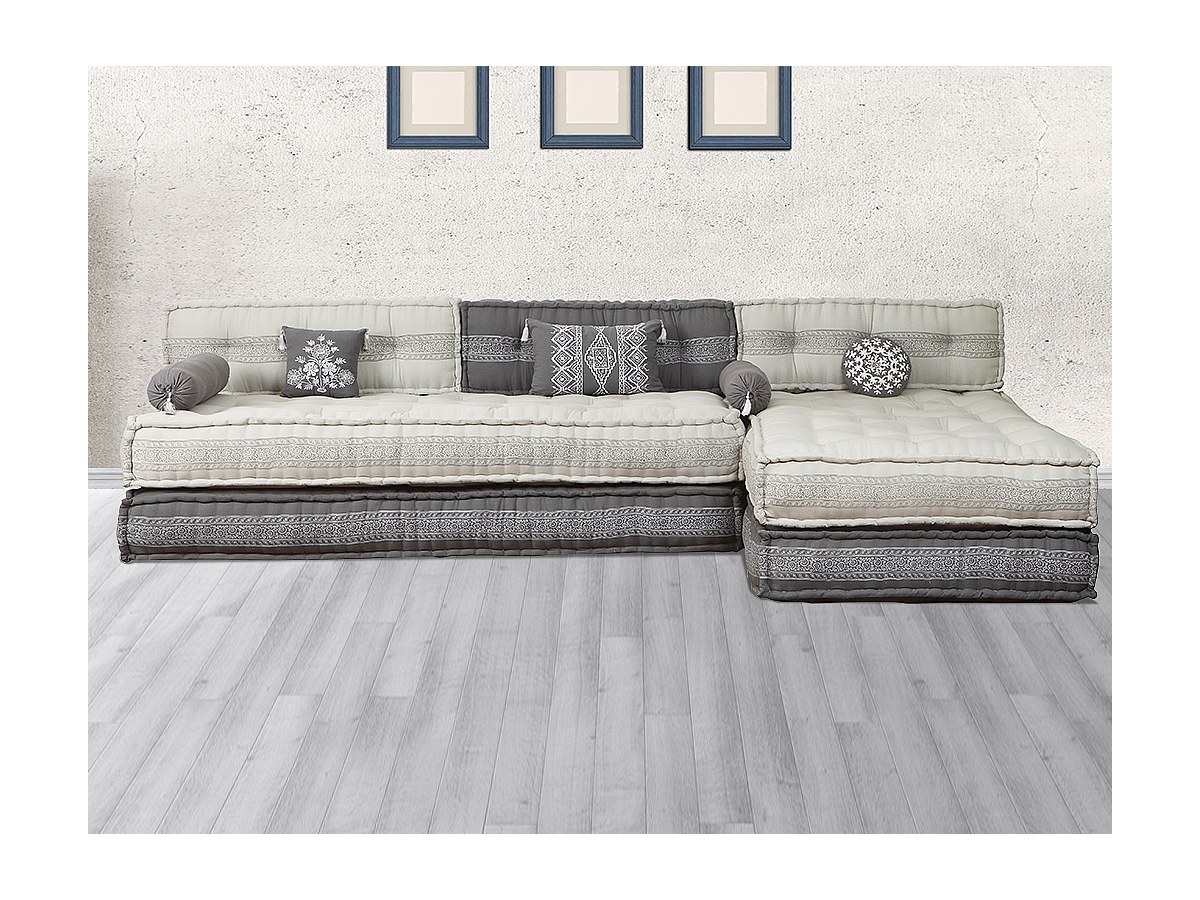 Sofá modular: este sofá é constituído por 4 colchões de chão e por 3 almofadas de encosto a dispor conforme a sua preferência.