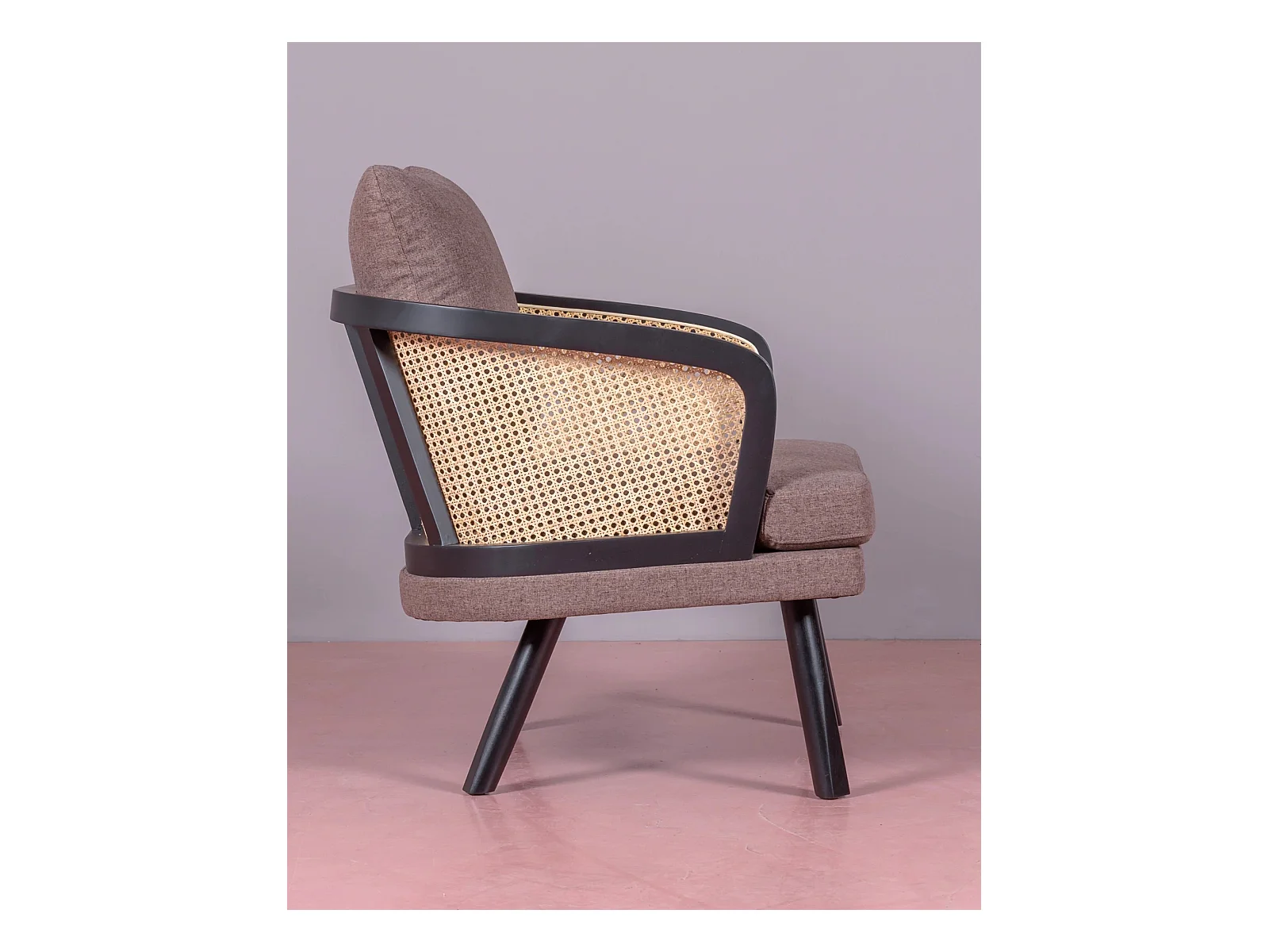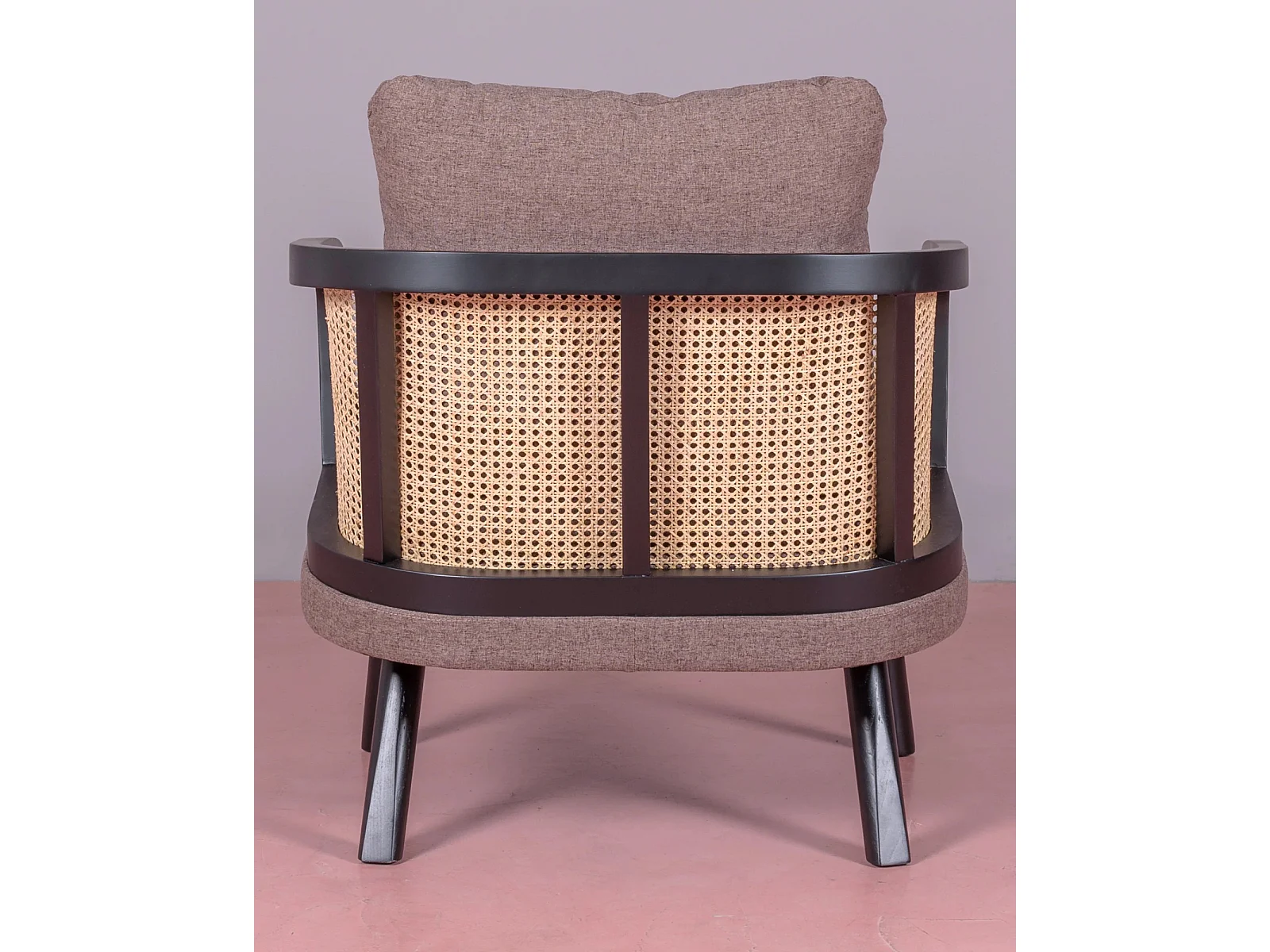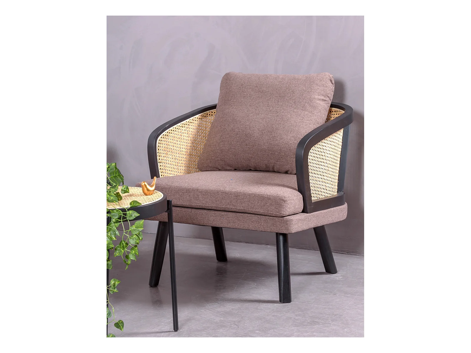 Cadeirão retro vintage em rotim natural e almofada de algodão - Leeds - Preto