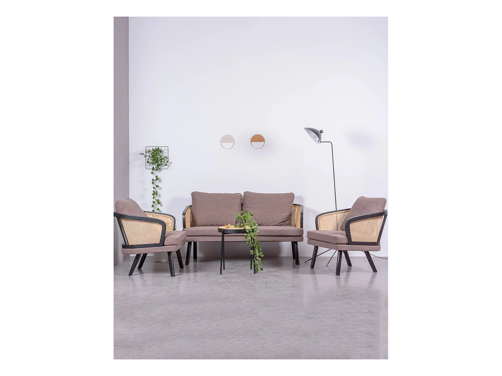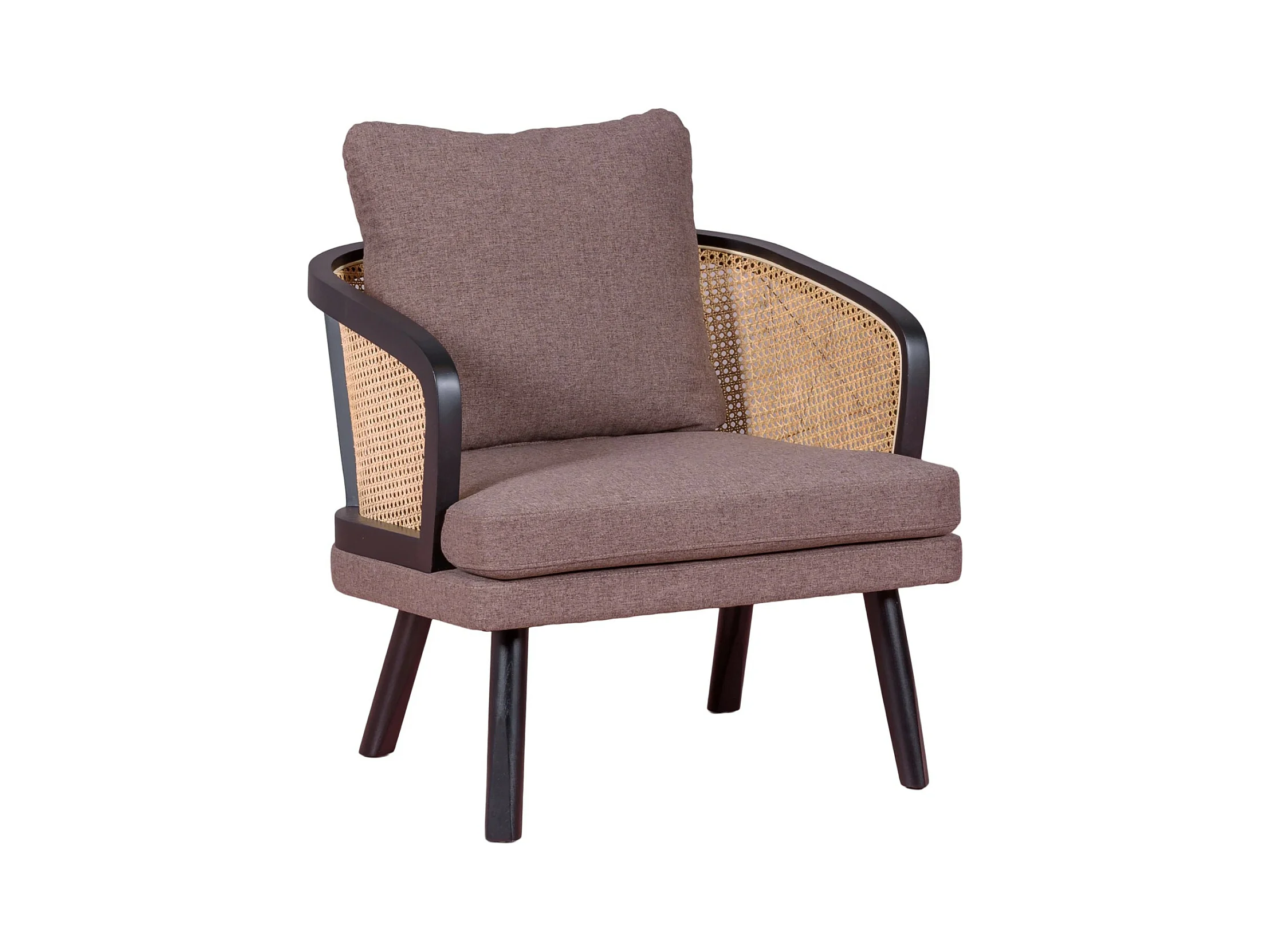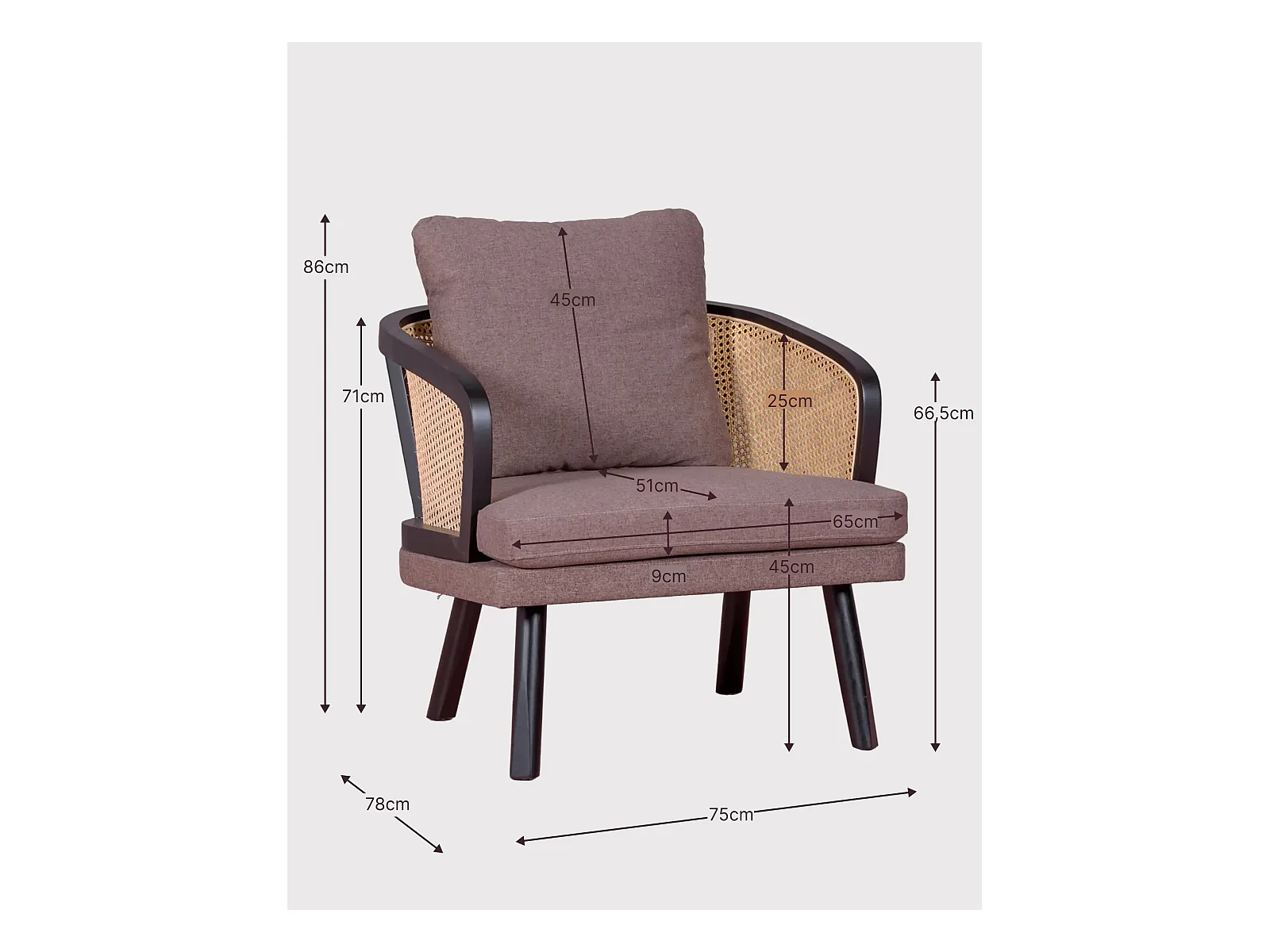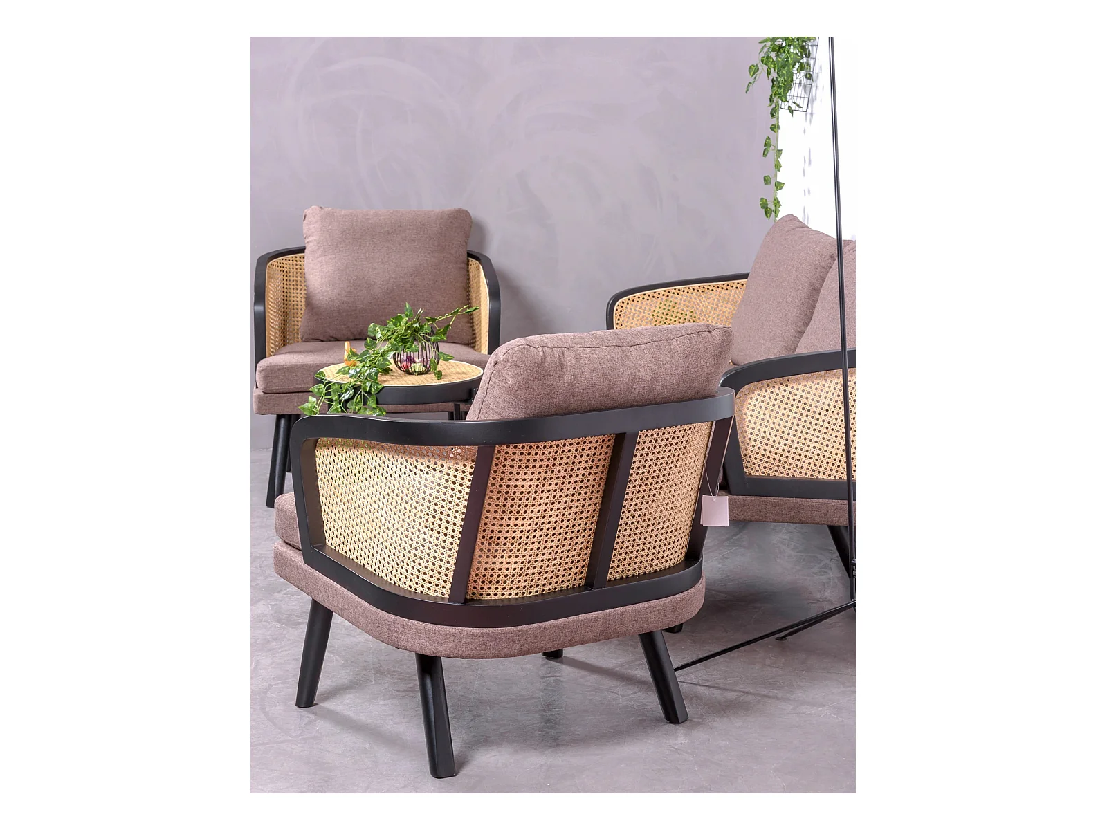 Cadeirão retro vintage em rotim natural e almofada de algodão - Leeds - Preto