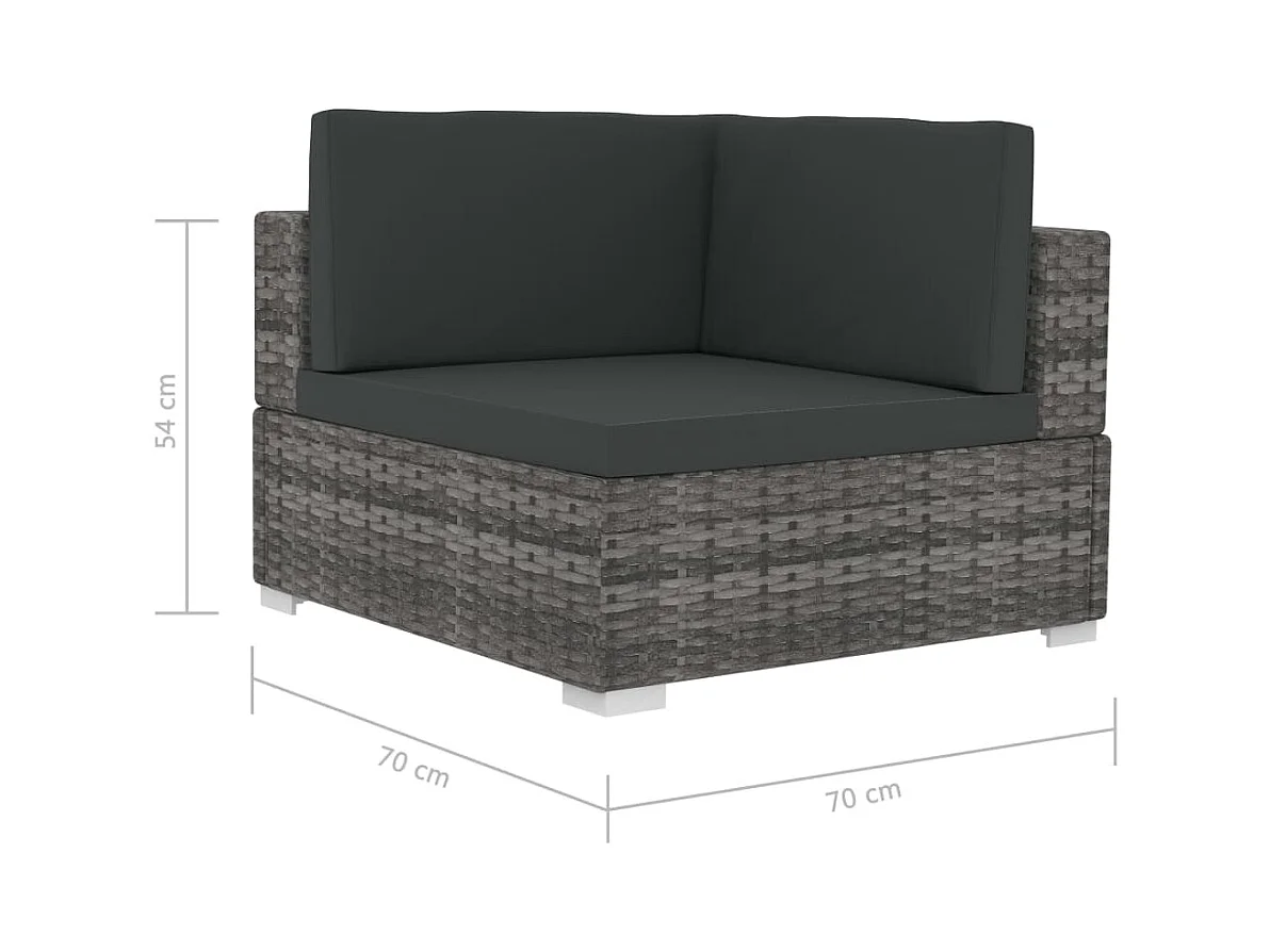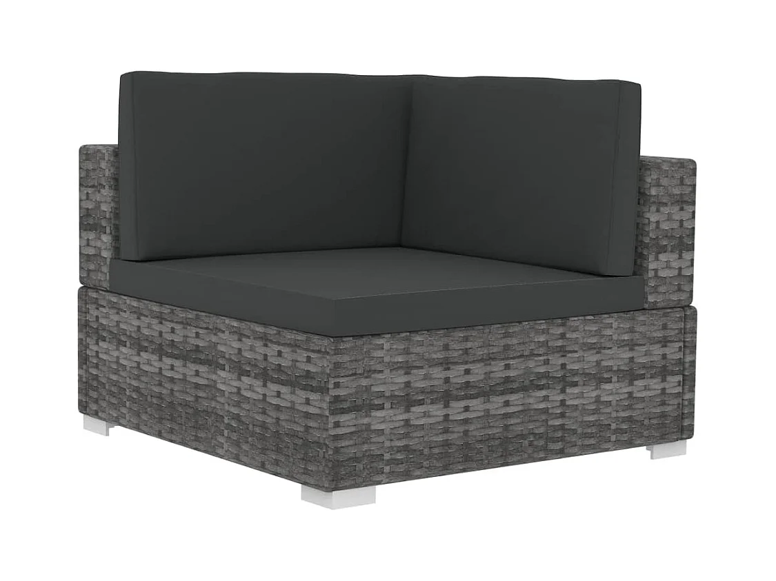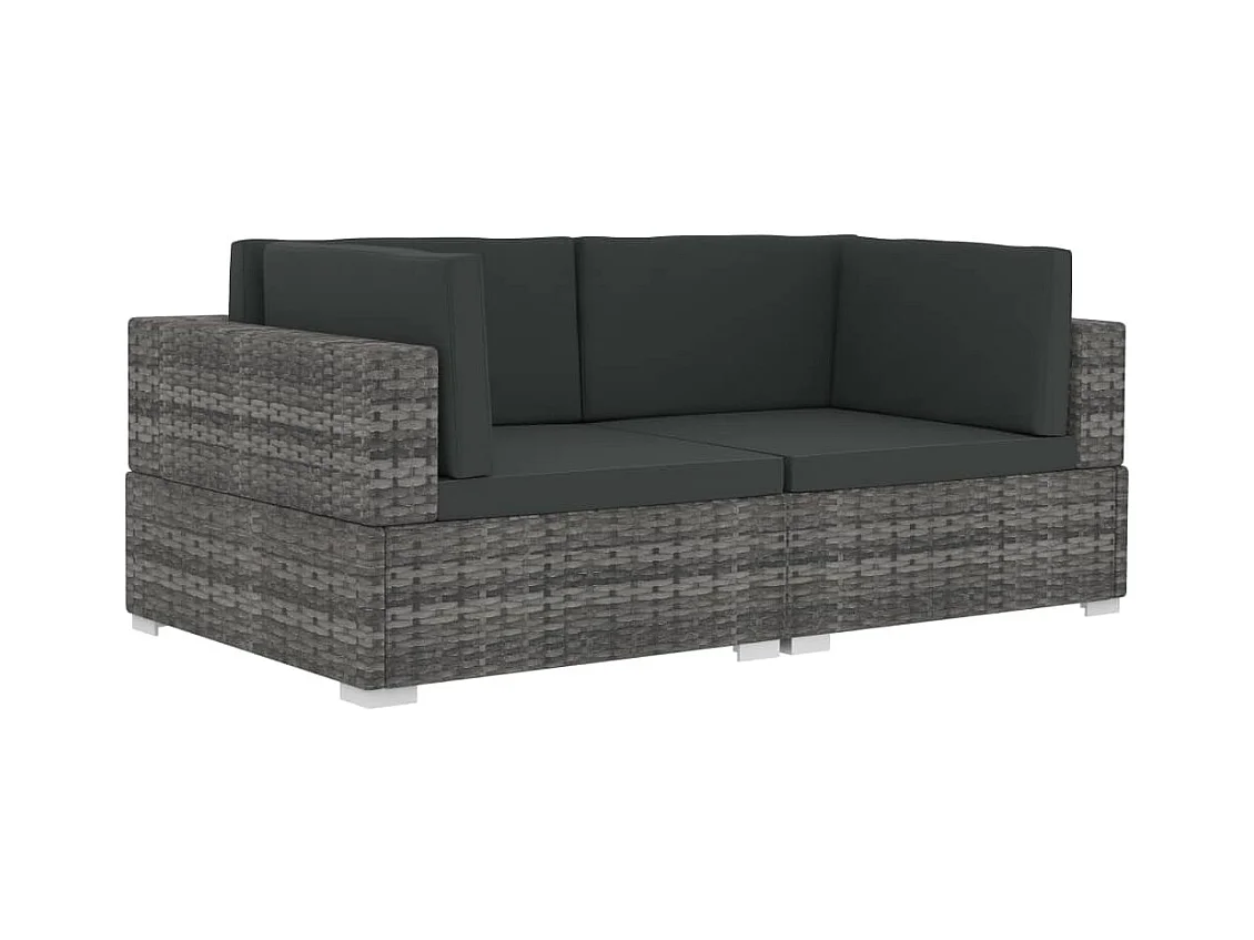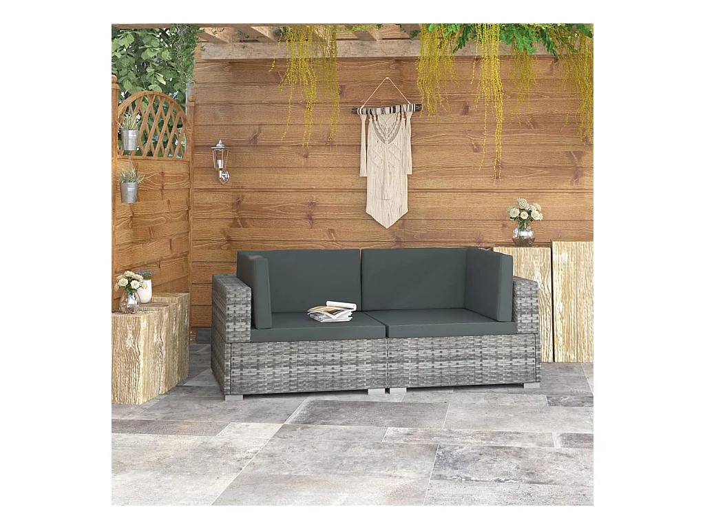 Cadeiras canto seccionais 2 pcs c/ almofadões vime PE cinzento PT391473