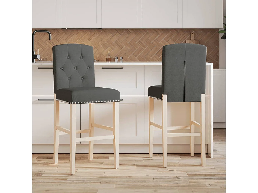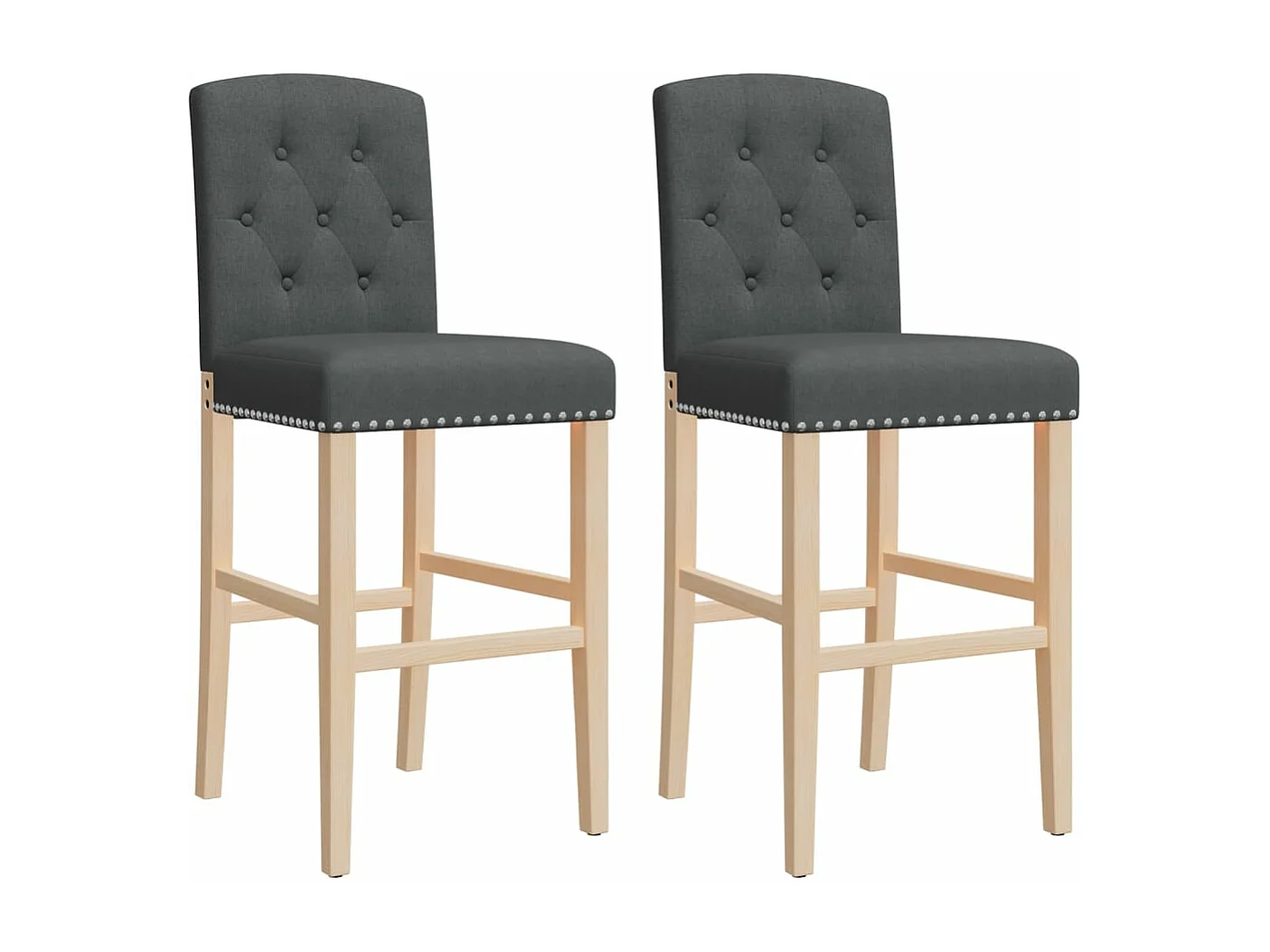 Cadeiras de bar 2 pcs madeira de seringueira maciça e tecido