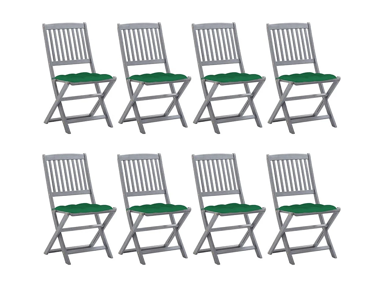 Cadeiras de exterior dobráveis 8peças c/ almofadões acácia maciça