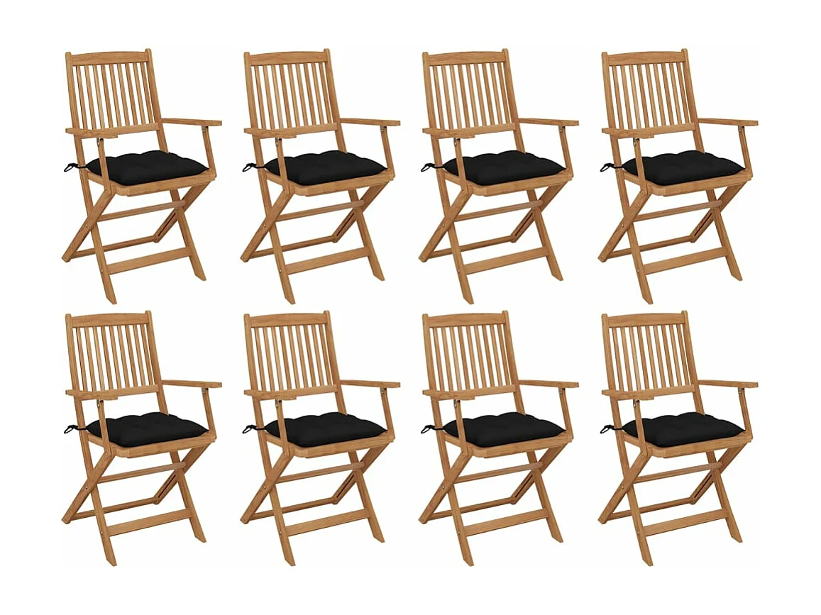 Cadeiras de exterior dobráveis com almofadões 8 peças acácia maciça