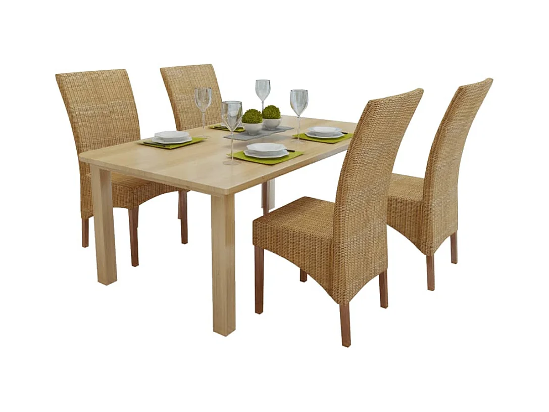 Cadeiras de jantar 4 peças vime Kubu e madeira mangueira castanho