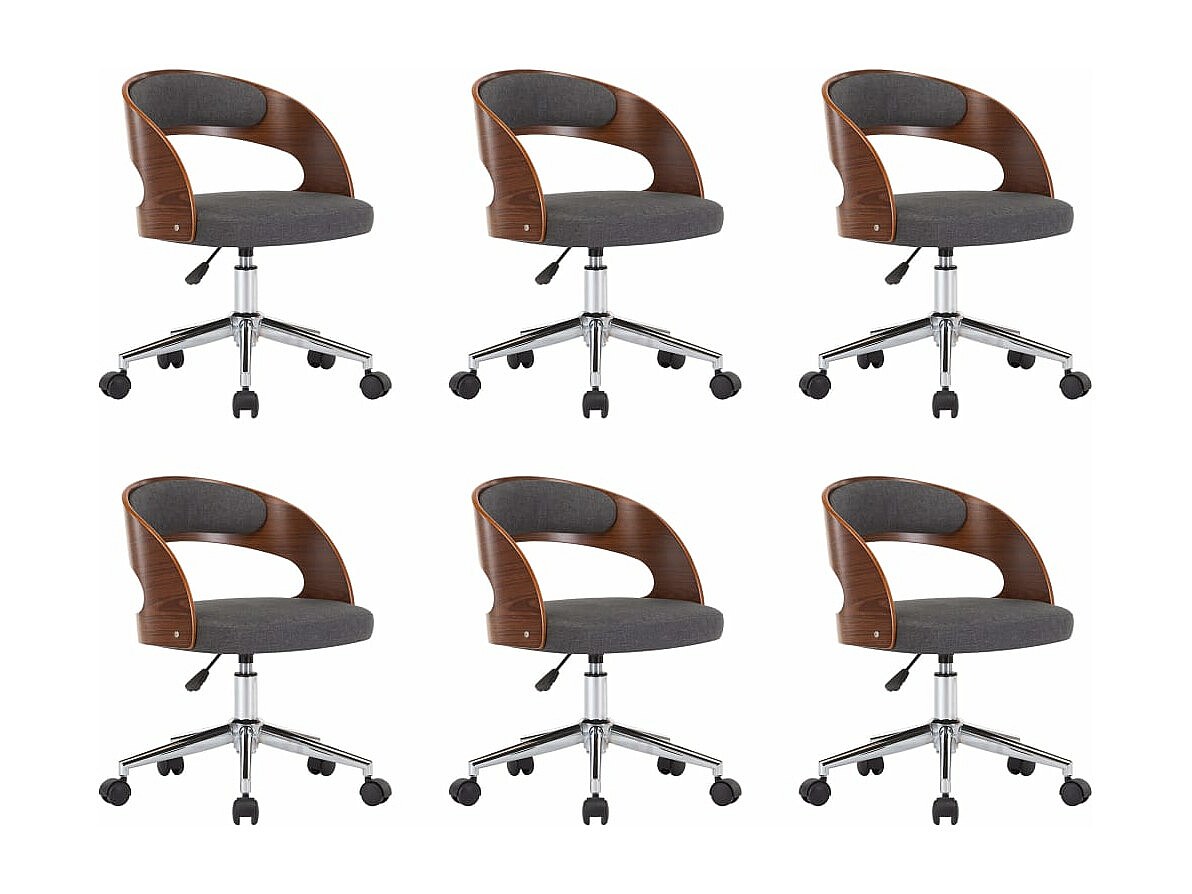Cadeiras de jantar 6 peças madeira curvada e tecido cinzento