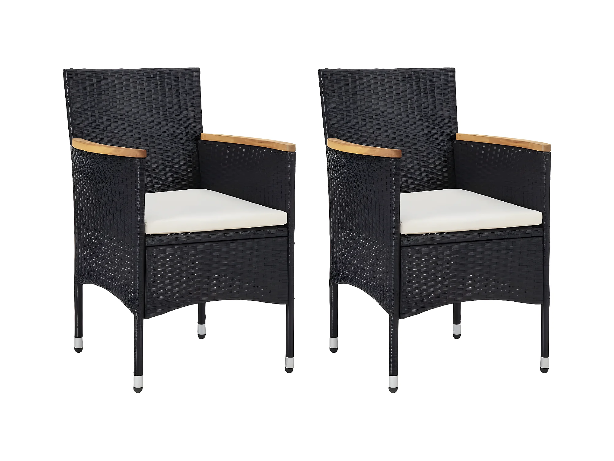 Cadeiras de jardim com almofadões 2 pcs vime PE preto PT227742