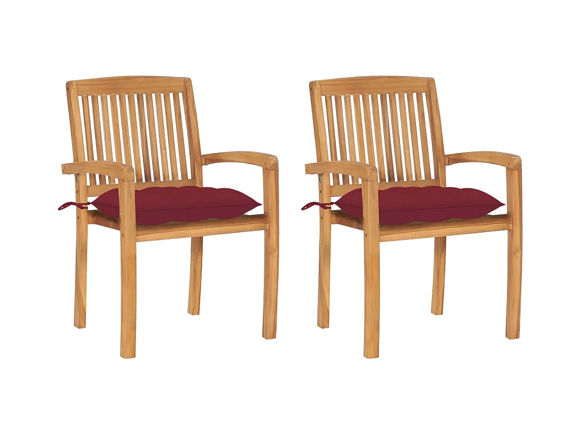 Cadeiras de jardim com almofadas vermelhas bordô 2 unidades Teca maciça